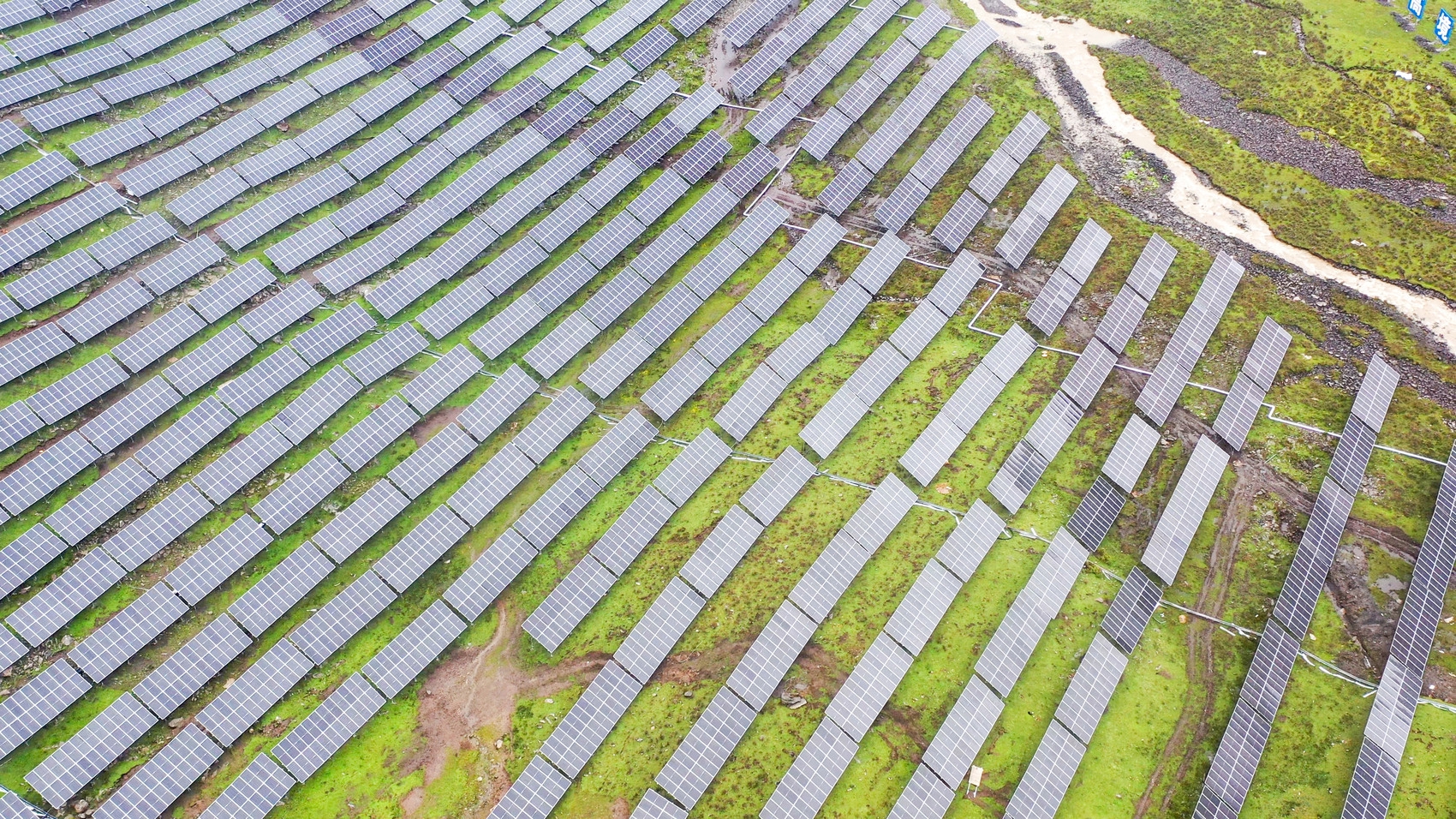 6月20日,海拔4200多米的高山遠(yuǎn)牧點(diǎn),一群群牦牛悠閑地吃著嫩綠的青草,不時(shí)發(fā)出“哞哞”的叫聲。五六米之外,就是一排排藍(lán)色太陽能光伏板整齊排列,幾十個(gè)工人穿梭其中忙著巡檢。