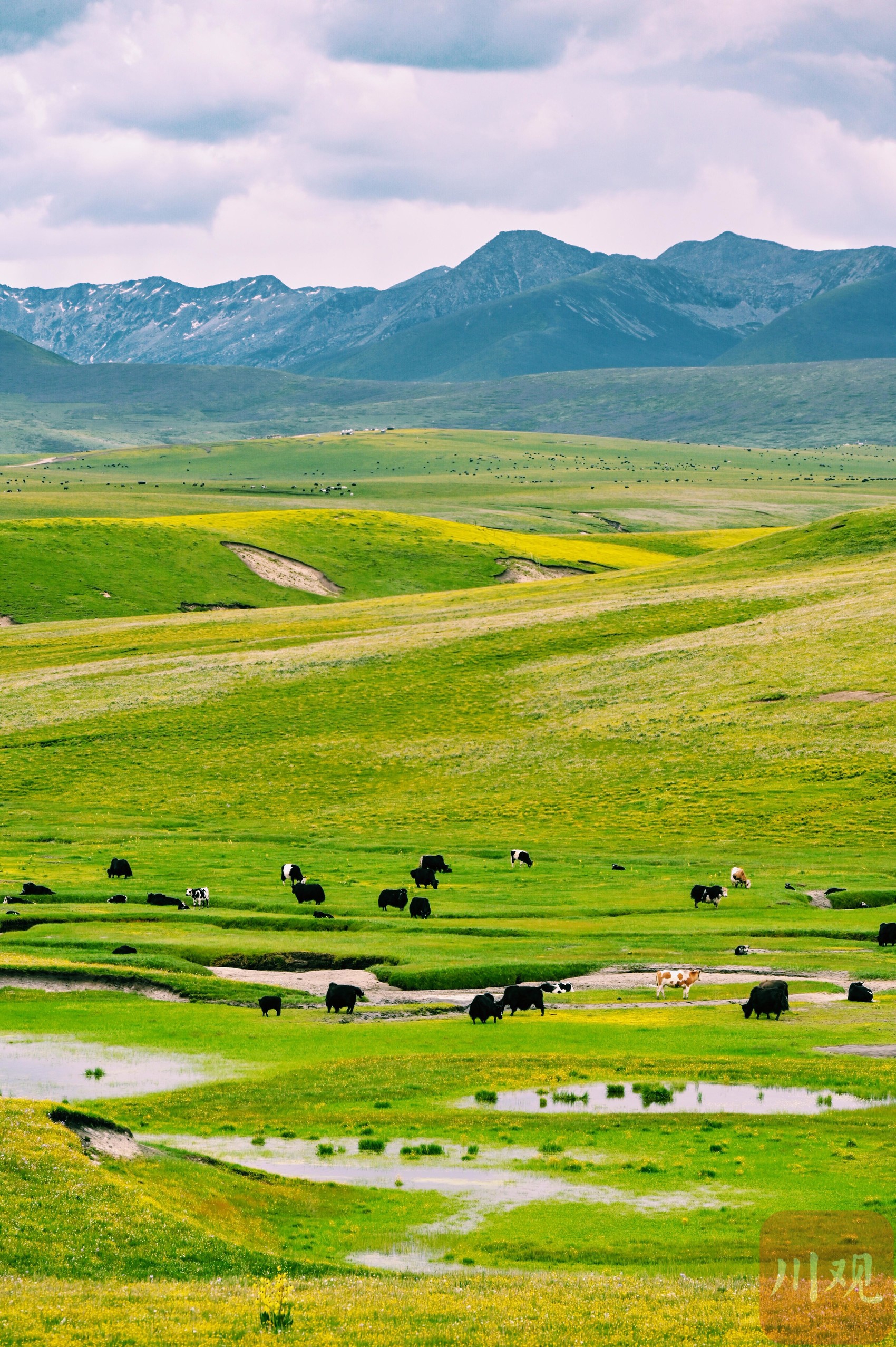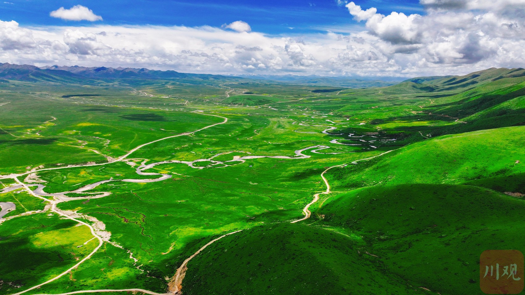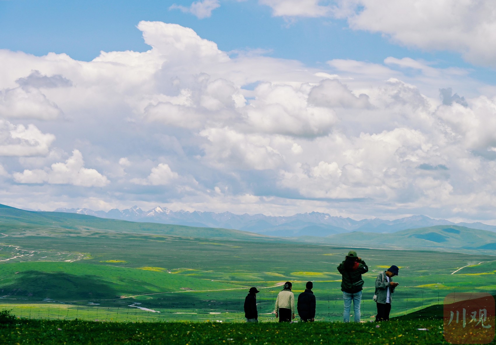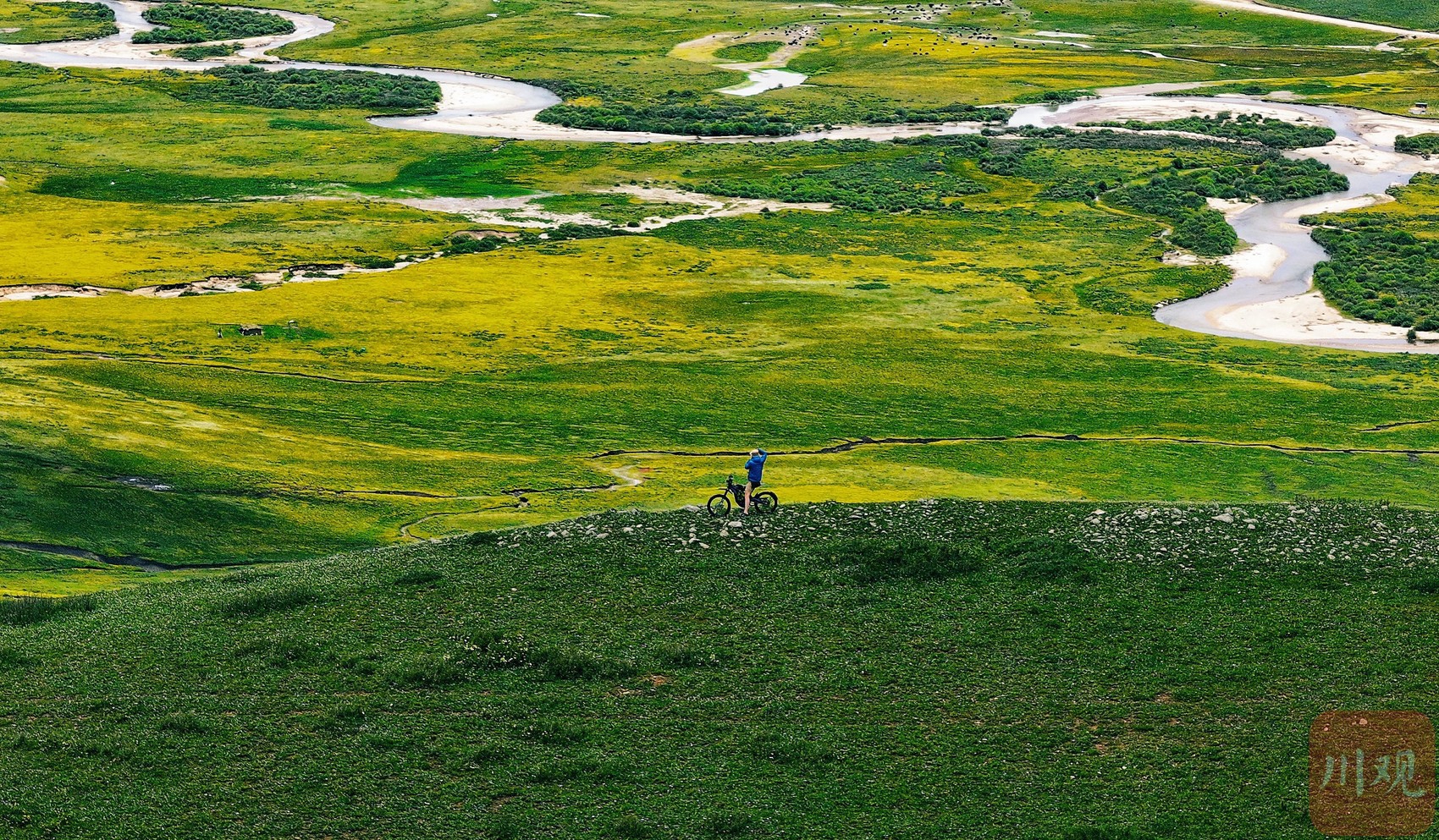 7月2日,四川省阿壩藏族羌族自治州紅原縣龍日鎮(zhèn),行走在路上眼前是不同的風(fēng)景與遇見。悠遠(yuǎn)的天空,潔白的云朵,起伏的山巒,濃綠的草地,閃著微光、涓涓流淌的溪水,連綿的大山…… 藍(lán)天下,滿眼旺盛的綠,這里就是川西高原的“阿勒泰”。