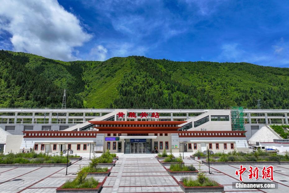 圖為7月7日航拍的川青鐵路黃勝關(guān)站站房外景。(無人機照片)中新社記者 劉忠俊 攝