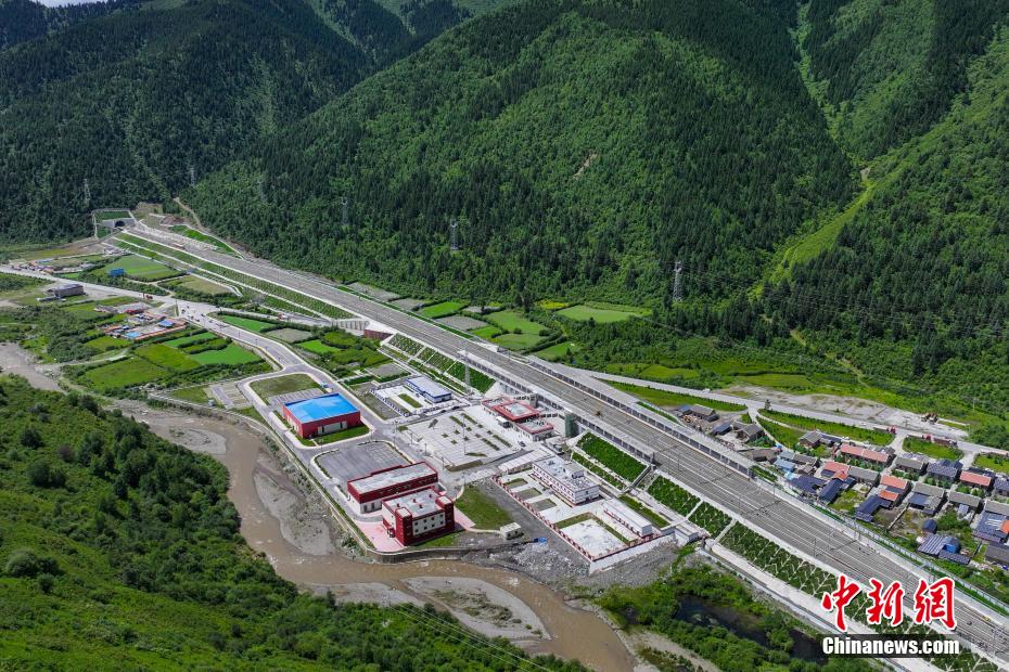 圖為7月7日航拍坐落于山谷間的川青鐵路黃勝關(guān)站。(無人機照片)中新社記者 劉忠俊 攝