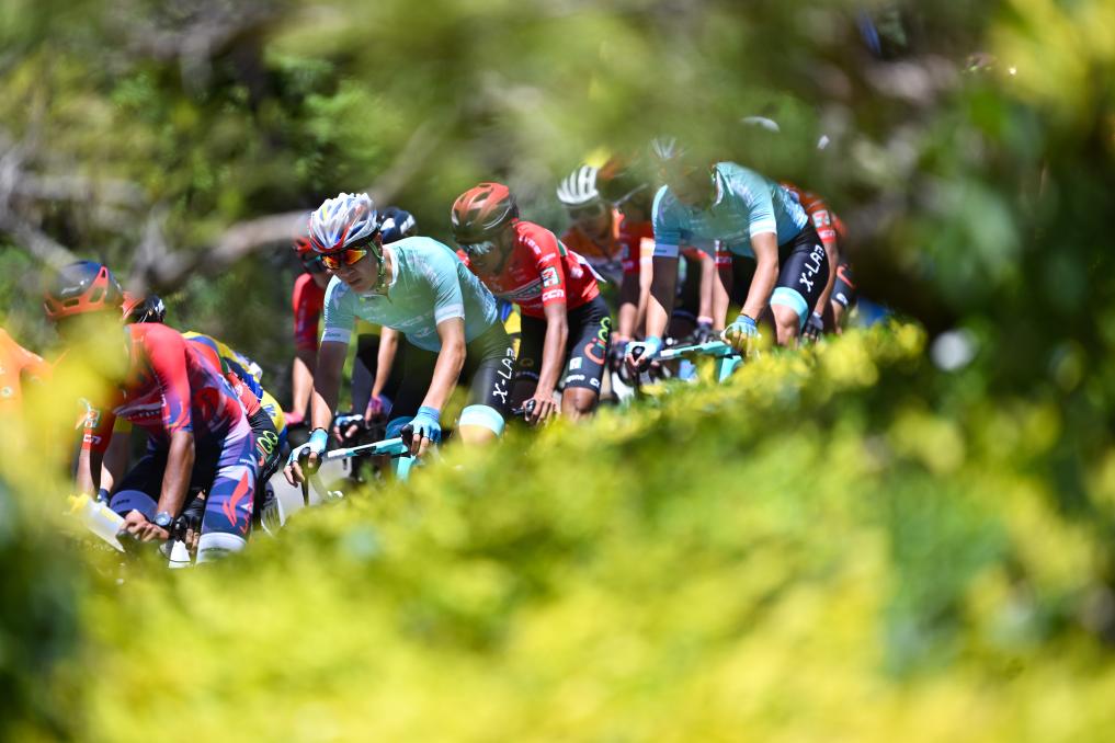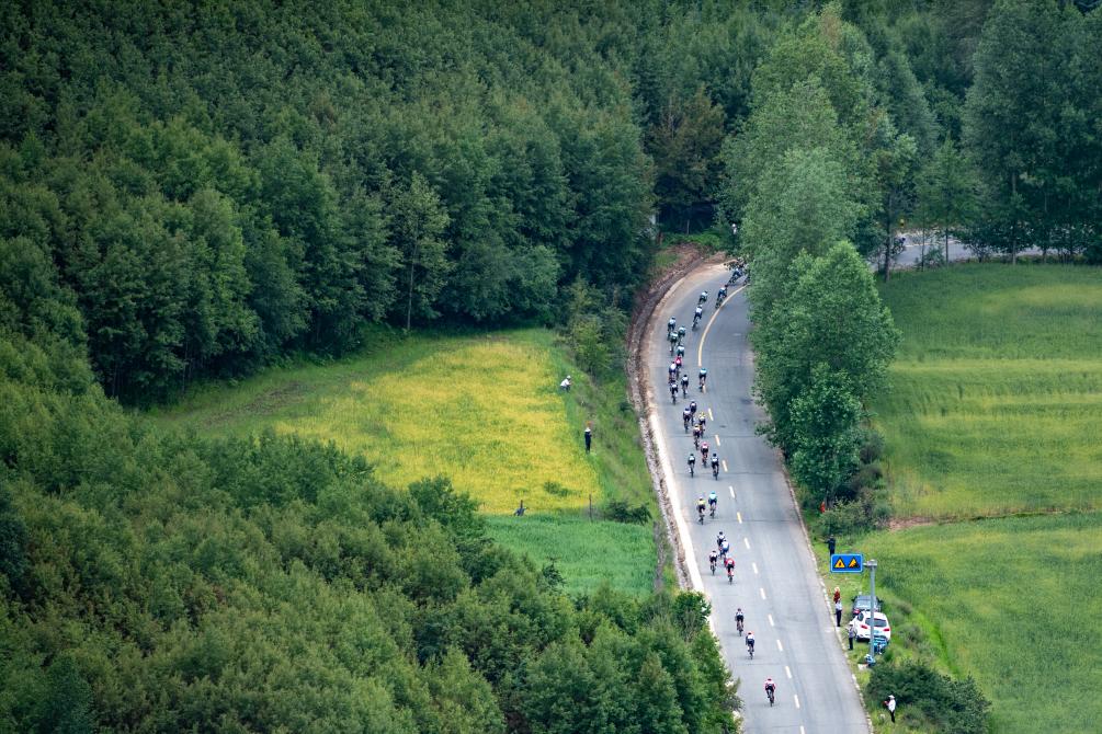 7月9日,參賽車手在比賽中騎行。新華社 潘彬彬 攝