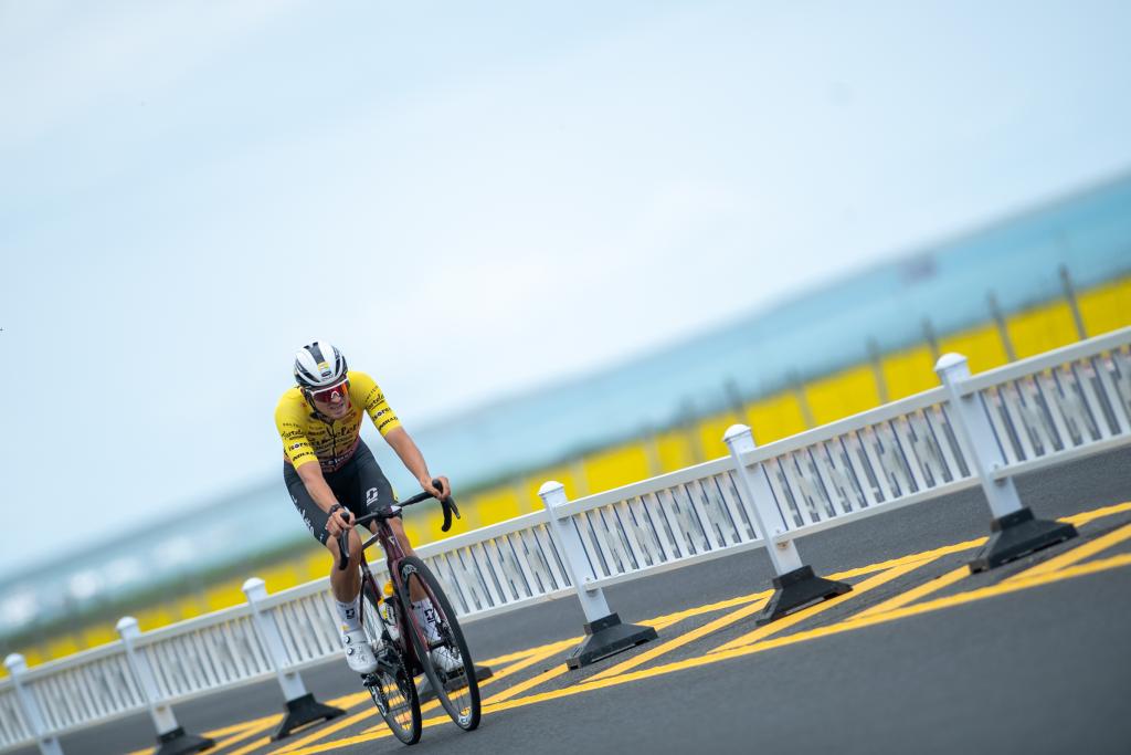 7月11日,比利時塔特雷托-艾索雷斯車隊車手阿恩·桑蒂在比賽中騎行。新華社 潘彬彬 攝
