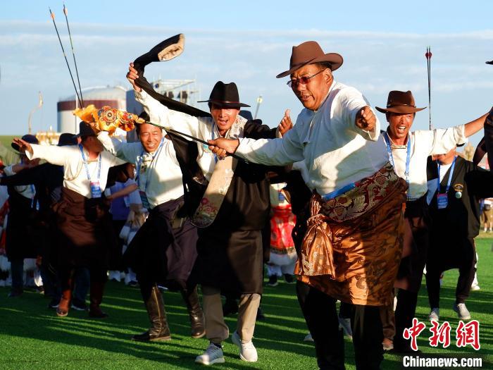 7月20日至23日,第九屆中國·青海國際民族傳統(tǒng)射箭精英賽在青海省海北藏族自治州剛察縣舉行,來自柬埔寨、蒙古國、波蘭、俄羅斯、中國等22個國家和地區(qū)的1100名射箭高手齊聚一堂,展示精湛射箭技藝。本屆賽事設(shè)置現(xiàn)代傳統(tǒng)弓、復(fù)合弓、反曲弓及牛角弓4個弓種,設(shè)置“現(xiàn)代傳統(tǒng)弓混合團(tuán)體和個人”等5個競賽項(xiàng)目。該賽事已成為中國民族傳統(tǒng)射箭比賽中規(guī)格級別最高、民族選手最多、參賽國家和地區(qū)最廣、弓種和項(xiàng)目最全的國際性品牌賽事。圖為7月20日青海省海北州運(yùn)動員在青海剛察舉辦的入場式上歡呼。中新社記者 李雋 攝