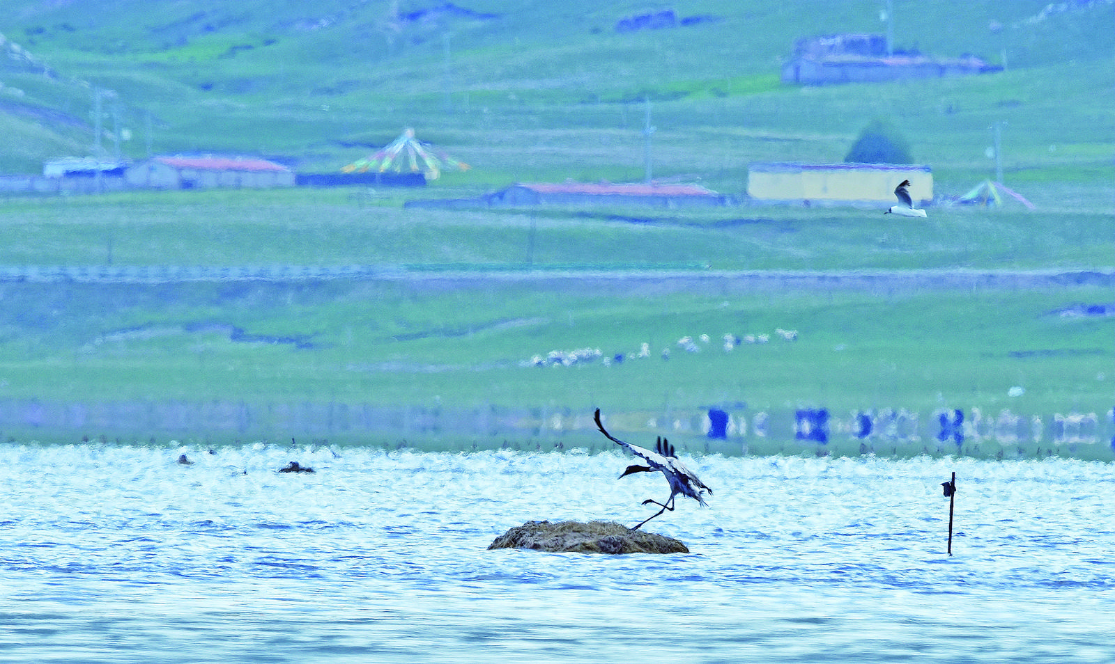 黑頸鶴在管護(hù)員搭建的鳥窩中安家。