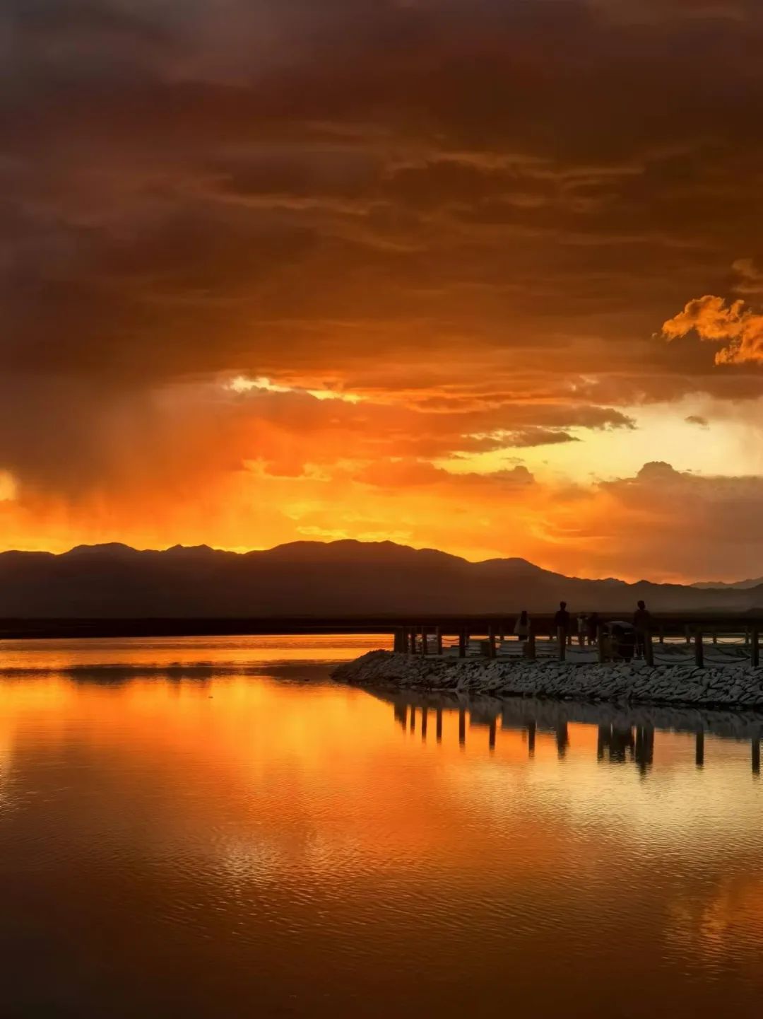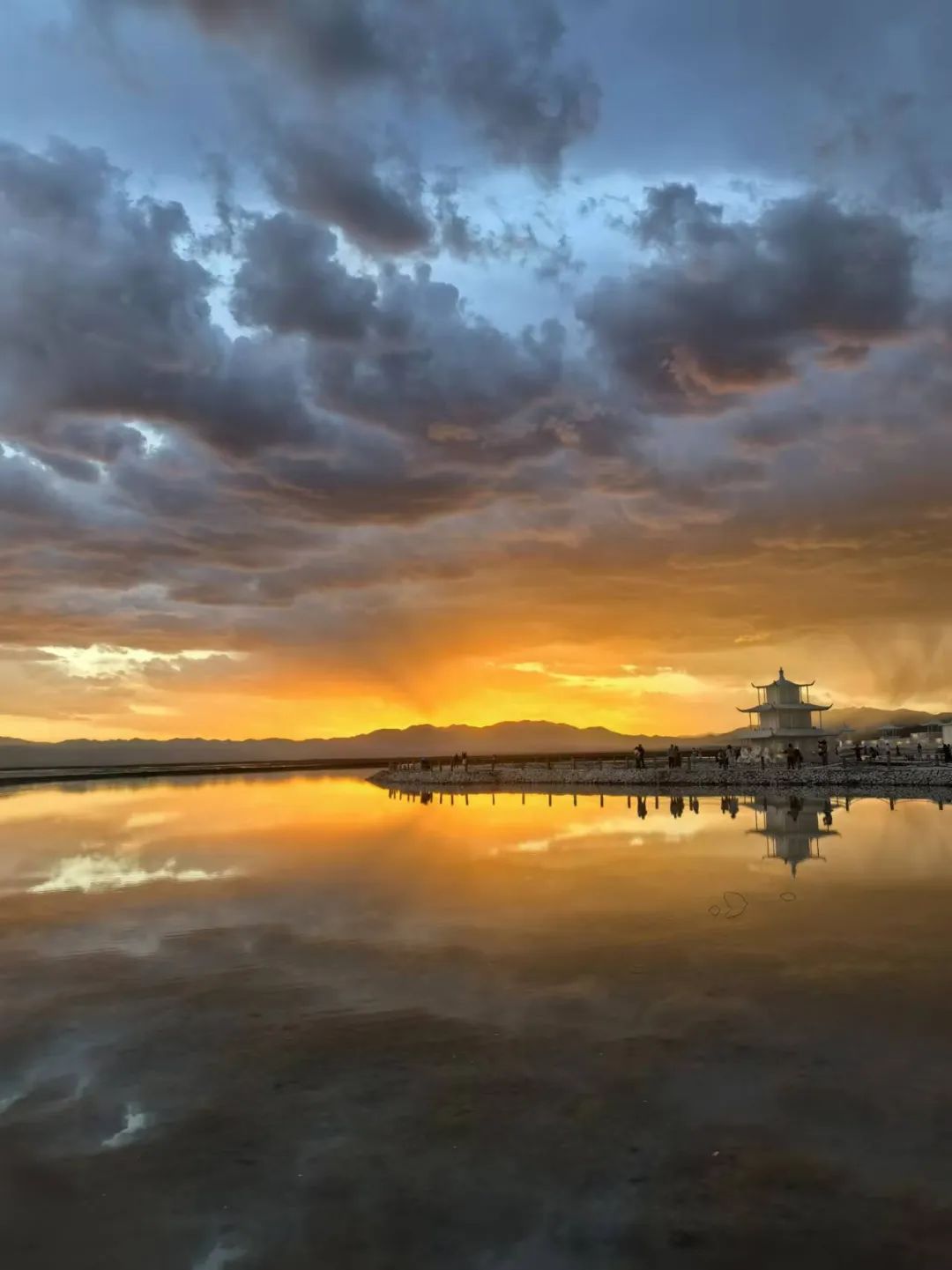 茶卡鹽湖雨后迎來世紀(jì)晚霞