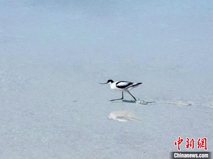 圖為反嘴鷸在茶卡鹽湖中覓食。王生榮 攝