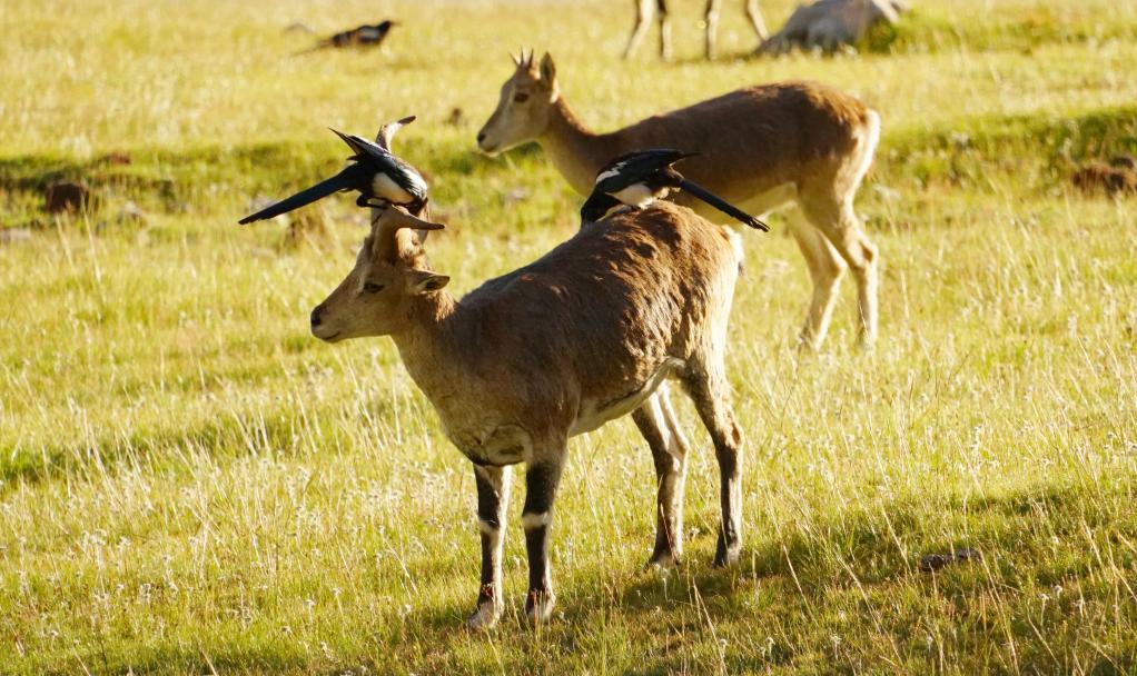 8月23日拍攝的青藏喜鵲和巖羊。自然觀察者 趙穎 攝