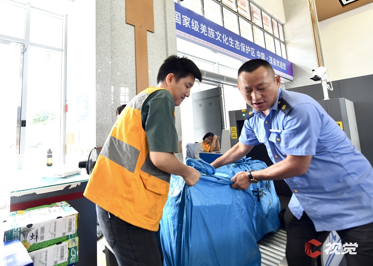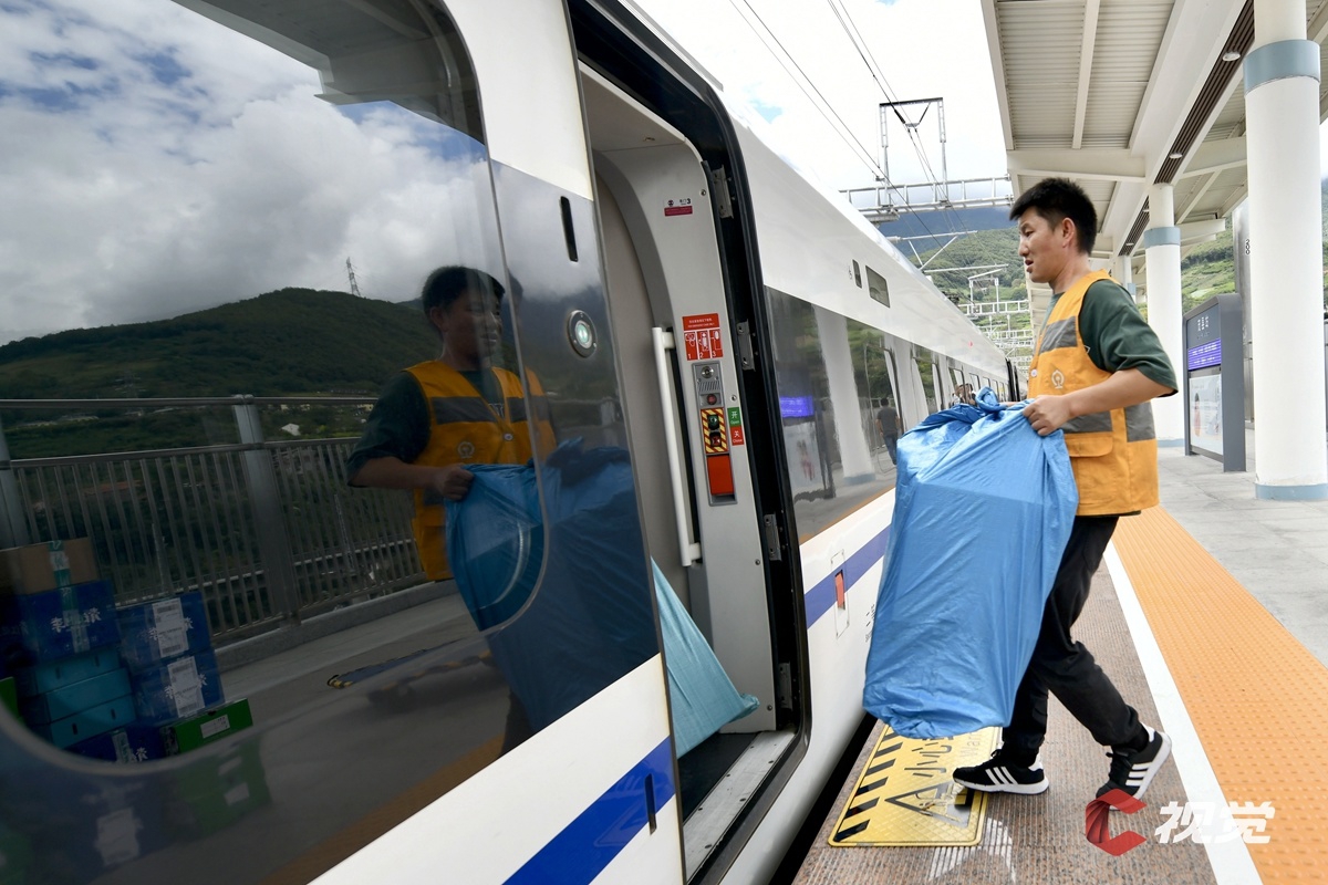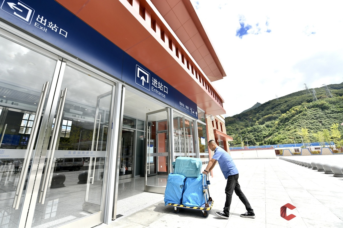 隨著8月30日川青鐵路鎮(zhèn)江關(guān)至黃勝關(guān)段首趟動車開行,高鐵快運(yùn)業(yè)務(wù)也在茂縣站同步開通辦理,這是川青鐵路成都東至黃勝關(guān)段首次面向沿線客戶受理高鐵快運(yùn)業(yè)務(wù)。9月10日,中鐵快運(yùn)成都分公司茂縣站營業(yè)部的工作人員將貨物有序裝車送至茂縣站,經(jīng)過安檢后,這些貨物被搬上松潘開往峨眉山的C5788次列車,最終送達(dá)成都東站。