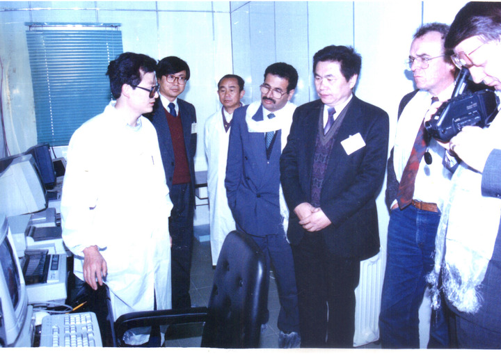 1994年9月,中外專家在瓦里關(guān)全球大氣本底站實(shí)驗(yàn)室參觀。青海省氣象局供圖