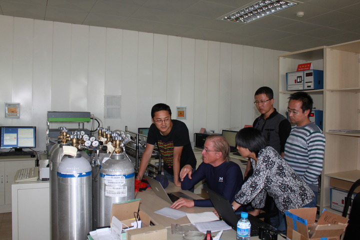 2011年11月,外國(guó)專家在瓦里關(guān)全球大氣本底站與青海省氣象局工作人員開展科學(xué)研究試驗(yàn)。青海省氣象局供圖