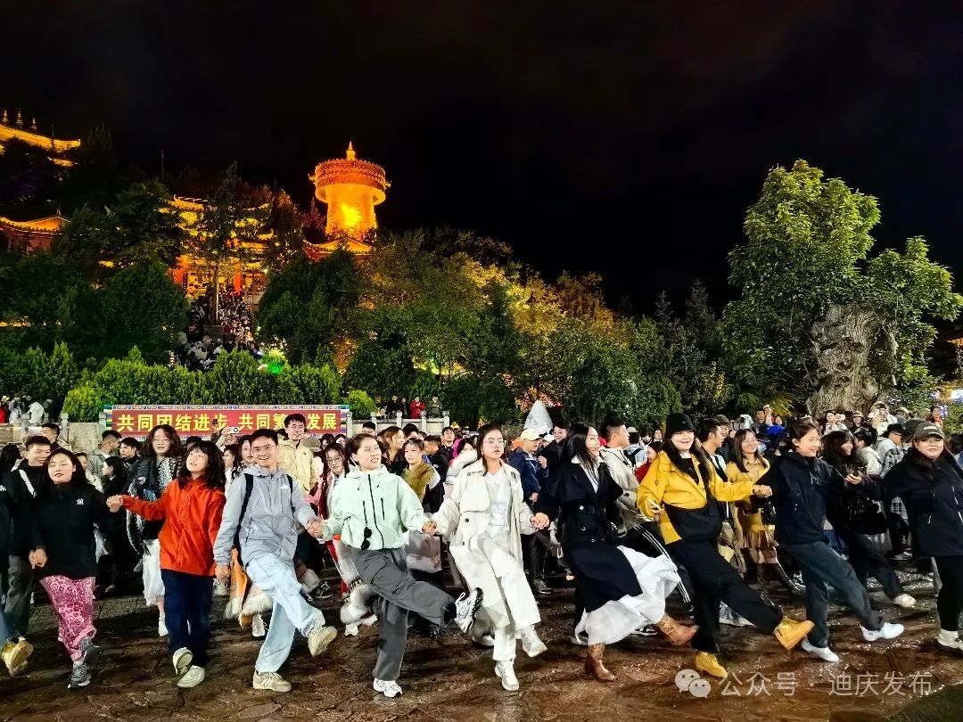 10月1日晚,香格里拉市在獨克宗古城舉辦“唱紅歌頌祖國·唱民族團結舞”篝火晚會,來自各地的游客與迪慶各族群眾一起載歌載舞歡度節(jié)日。