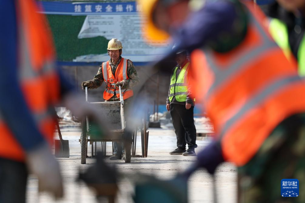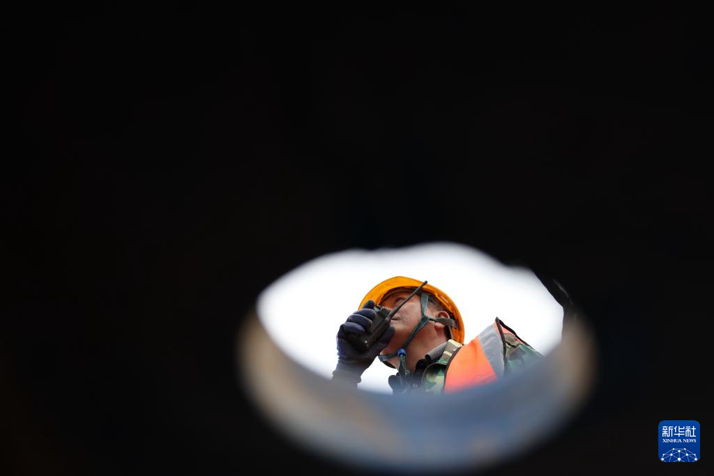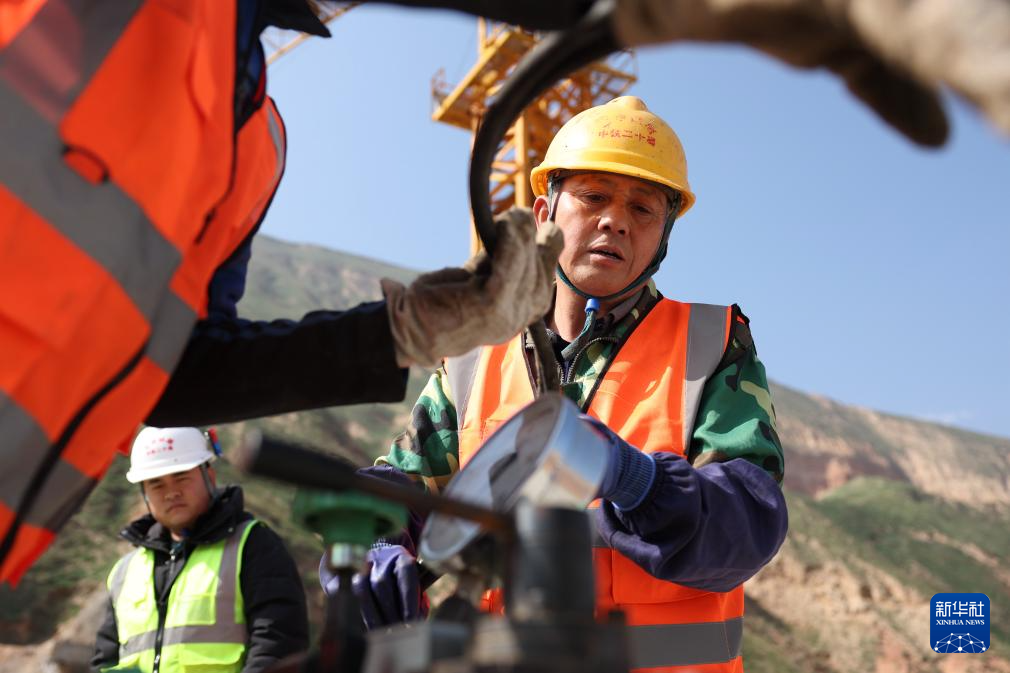 10月12日,中鐵二十局的建設者在蘭合鐵路本池溝大橋上施工作業(yè)。新華社記者 陳斌 攝