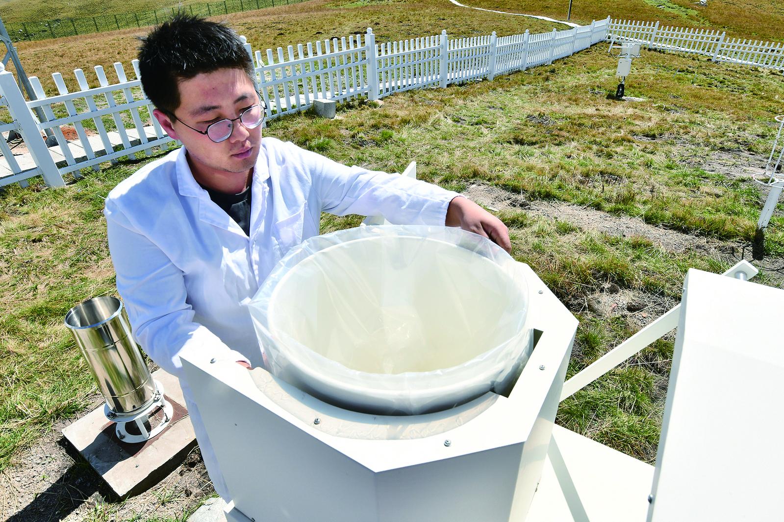更換酸雨采樣袋。