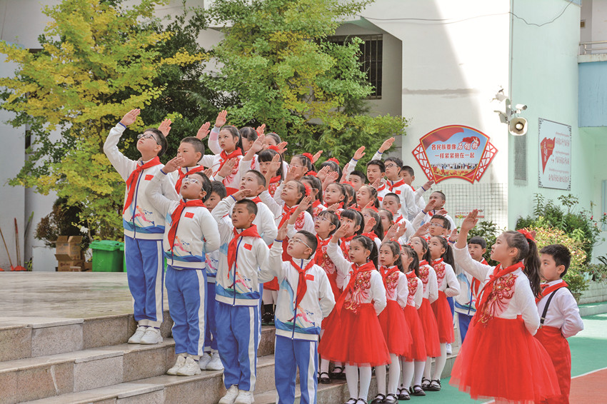 活躍提升組織生活也是少先隊(duì)工作強(qiáng)基固本的重要環(huán)節(jié)。通過健全少先隊(duì)階梯式成長激勵(lì)體系;全面實(shí)施分批入隊(duì)、分段教育、分級激勵(lì)和推優(yōu)入團(tuán);依托“紅領(lǐng)巾獎(jiǎng)?wù)隆备采w隊(duì)中教育全過程等措施,全市14至15周歲新入團(tuán)團(tuán)員經(jīng)由少先隊(duì)組織推優(yōu)入團(tuán)達(dá)100%。此外,全覆蓋開展“開學(xué)第一堂隊(duì)課”、主題隊(duì)課活動(dòng),規(guī)范舉行入隊(duì)儀式等,讓少先隊(duì)員組織意識和光榮感全面增強(qiáng)。