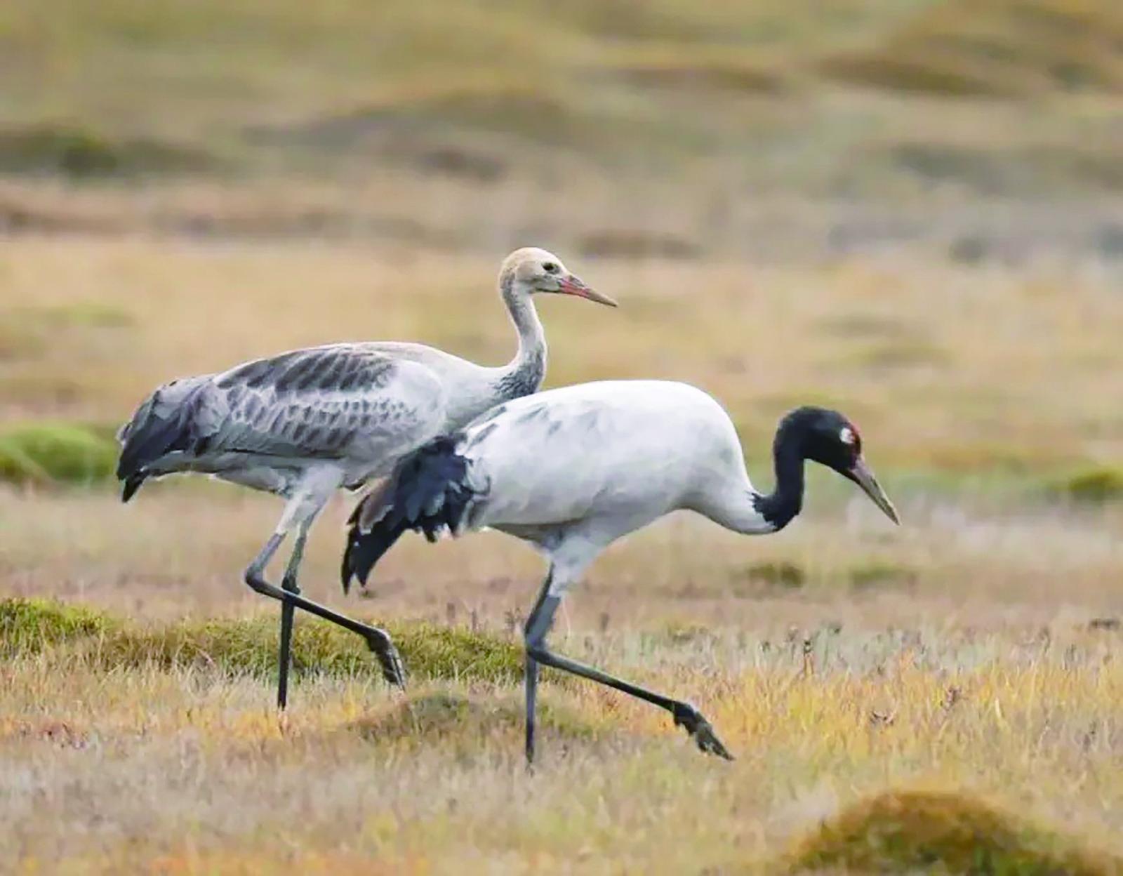 據(jù)倉生龍介紹,黑頸鶴是國家一級重點保護野生動物,也是青海省“省鳥”,是惟一一種生活在高原上的鶴類,目前全球種群數(shù)量在17000只左右。青海省分布有黑頸鶴2616只,其中465只為旅鳥,在青海省季節(jié)性停歇一段時間后飛往甘肅省繁殖,其余2151只為青海省夏候鳥,在青海省繁殖棲息。青海省的黑頸鶴遷徙路線主要有三條:第一條為青海湖及周邊區(qū)域、玉樹藏族自治州東南部及隆寶灘繁殖的黑頸鶴前往西藏林芝的雅尼濕地、巴松措和易貢措等區(qū)域越冬;第二條為祁連山北麓青海區(qū)域的黑頸鶴前往拉薩林周縣雅魯藏布支流的澎玉年曲流域、雅魯藏布江沿岸日喀則年木鄉(xiāng)進行越冬;第三條為黃南藏族自治州黃河沿岸濕地、果洛藏族自治州希門措等區(qū)域繁殖的黑頸鶴遷往云南昭通大山包越冬。