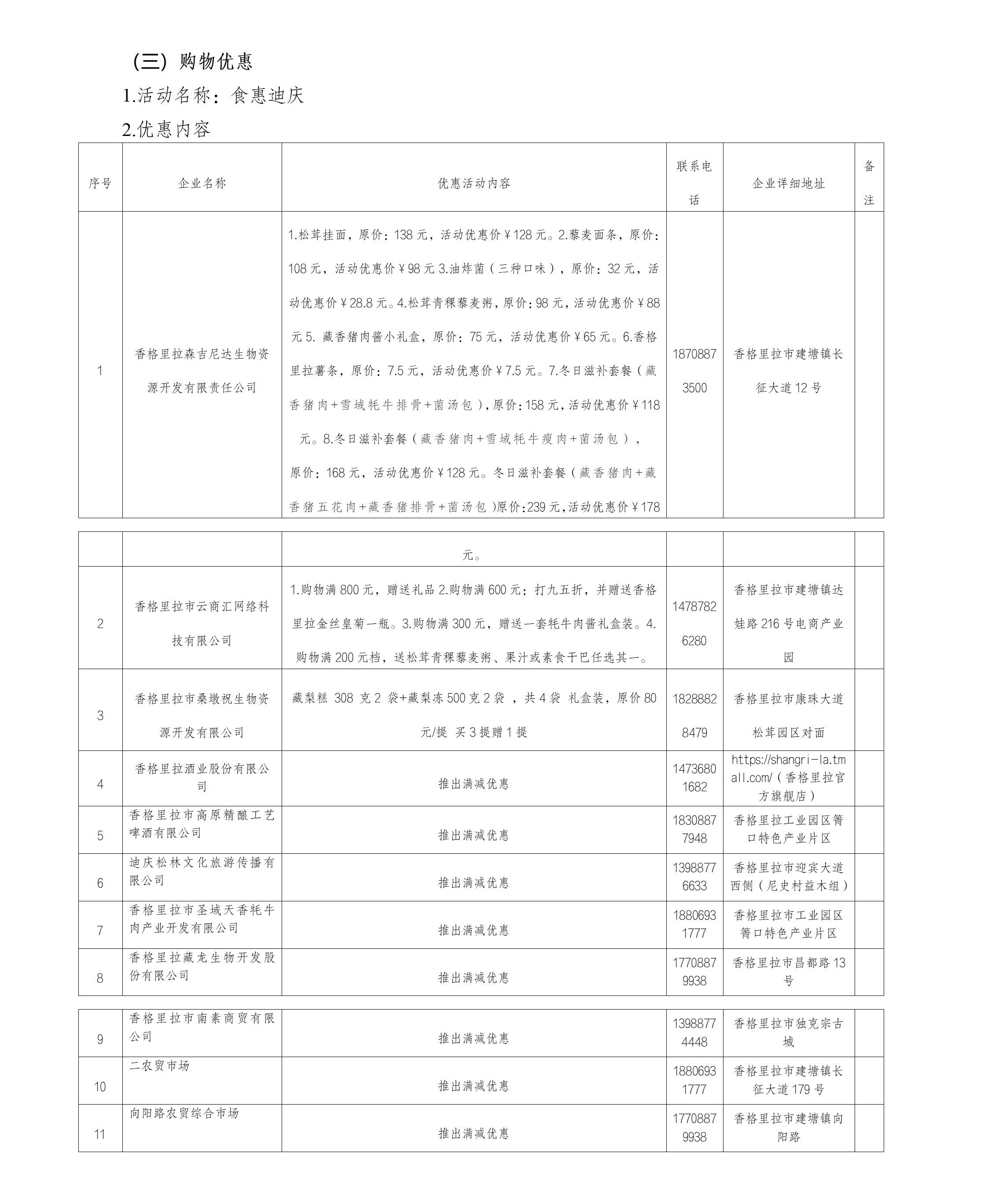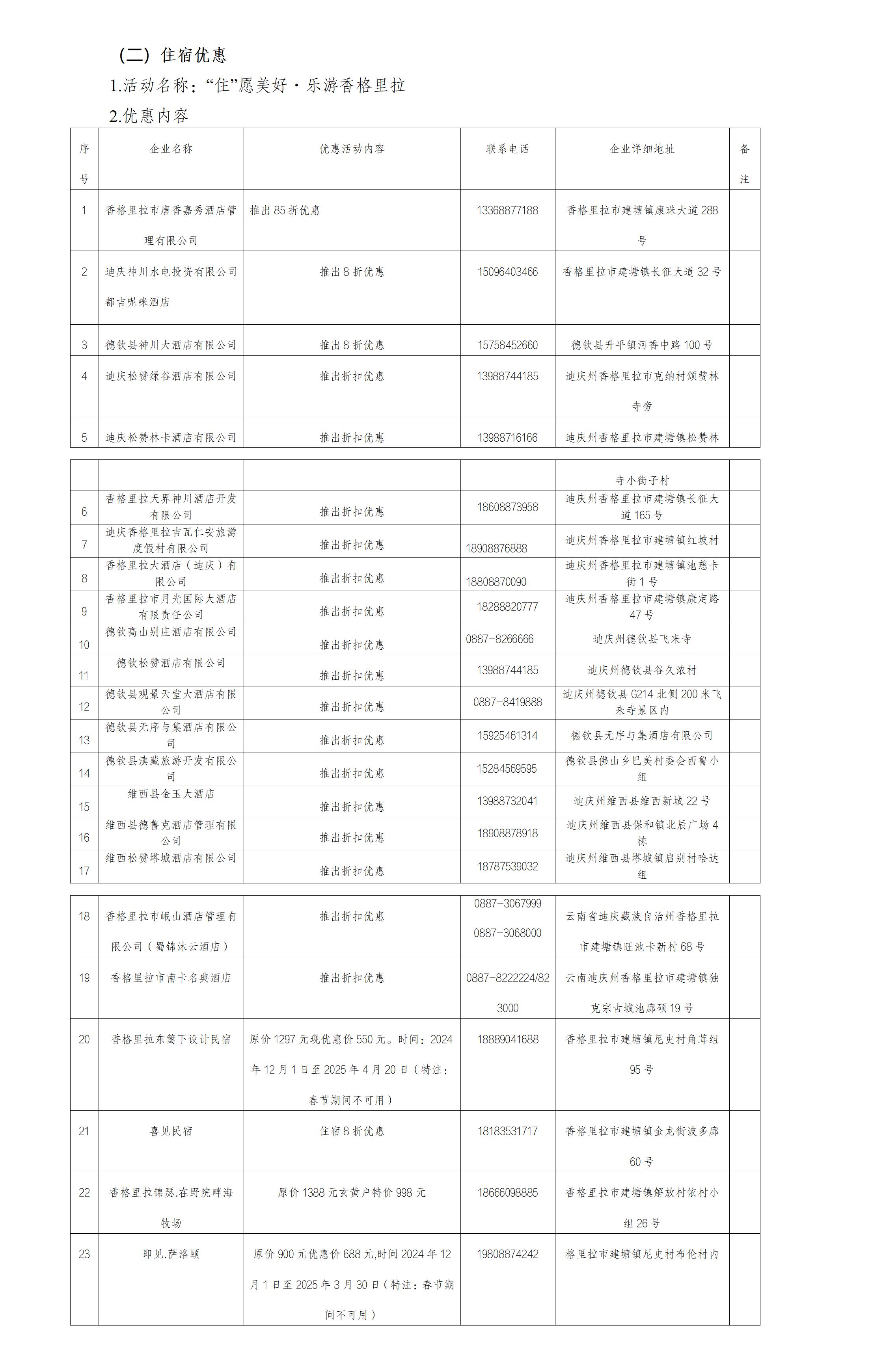 為熱烈迎接香格里拉的冬季旅游市場消費客群,迪慶商務部門在動車開通一周年之際特別推出一系列“吃、住、購”的優(yōu)惠政策。6家線上特色餐飲企業(yè)及20家古城精選餐飲業(yè)將提供2.2折至9.2折的超值優(yōu)惠,同時發(fā)放各類優(yōu)惠券;19家優(yōu)質線上住宿企業(yè)及州內百余家民宿將提供8折至8.5折的住宿優(yōu)惠;10余家迪慶特色產品的生產銷售企業(yè)推出滿減折扣優(yōu)惠、享受贈品的優(yōu)惠福利,讓廣大游客樂游香格里拉提升旅游體驗。