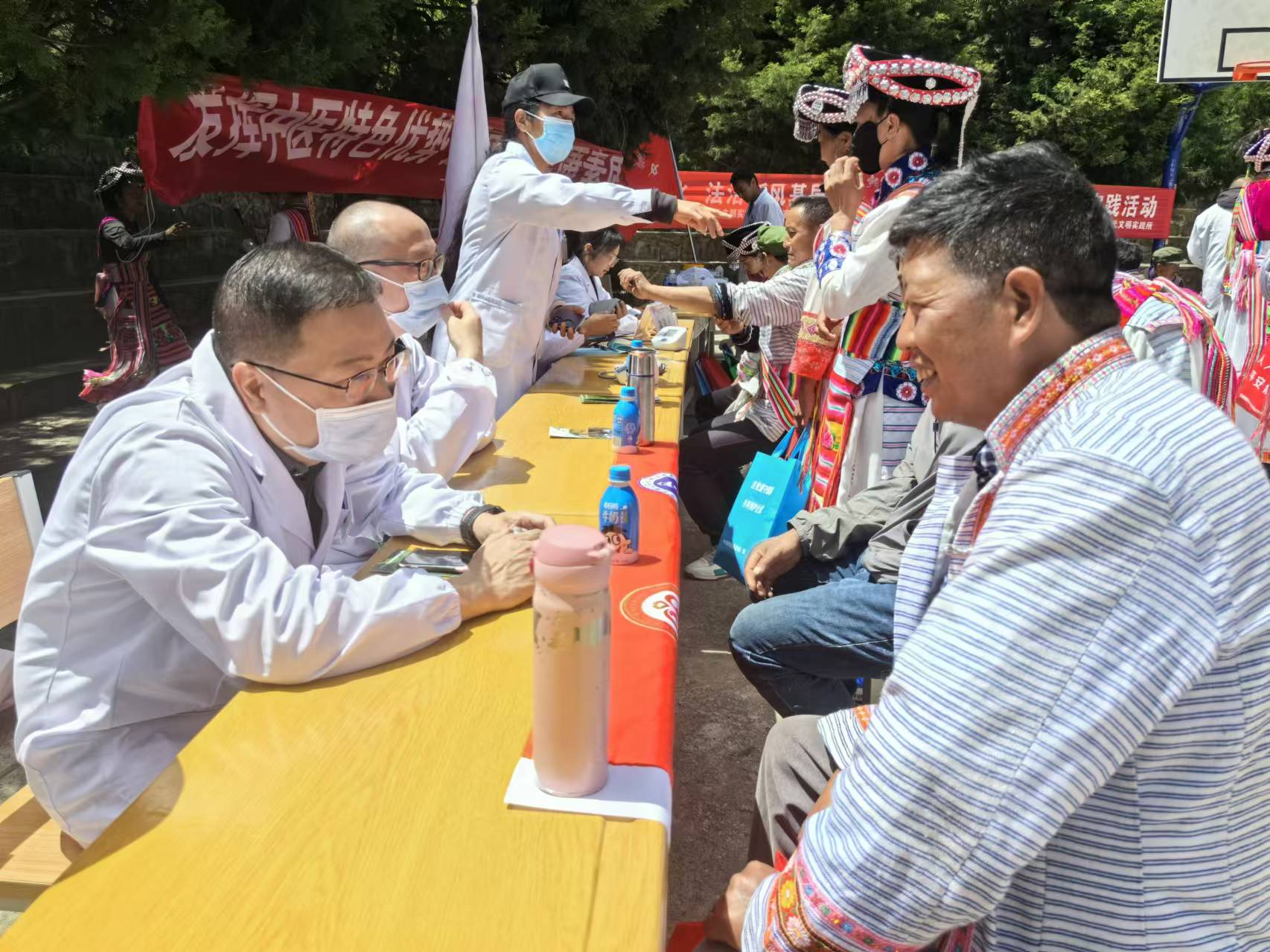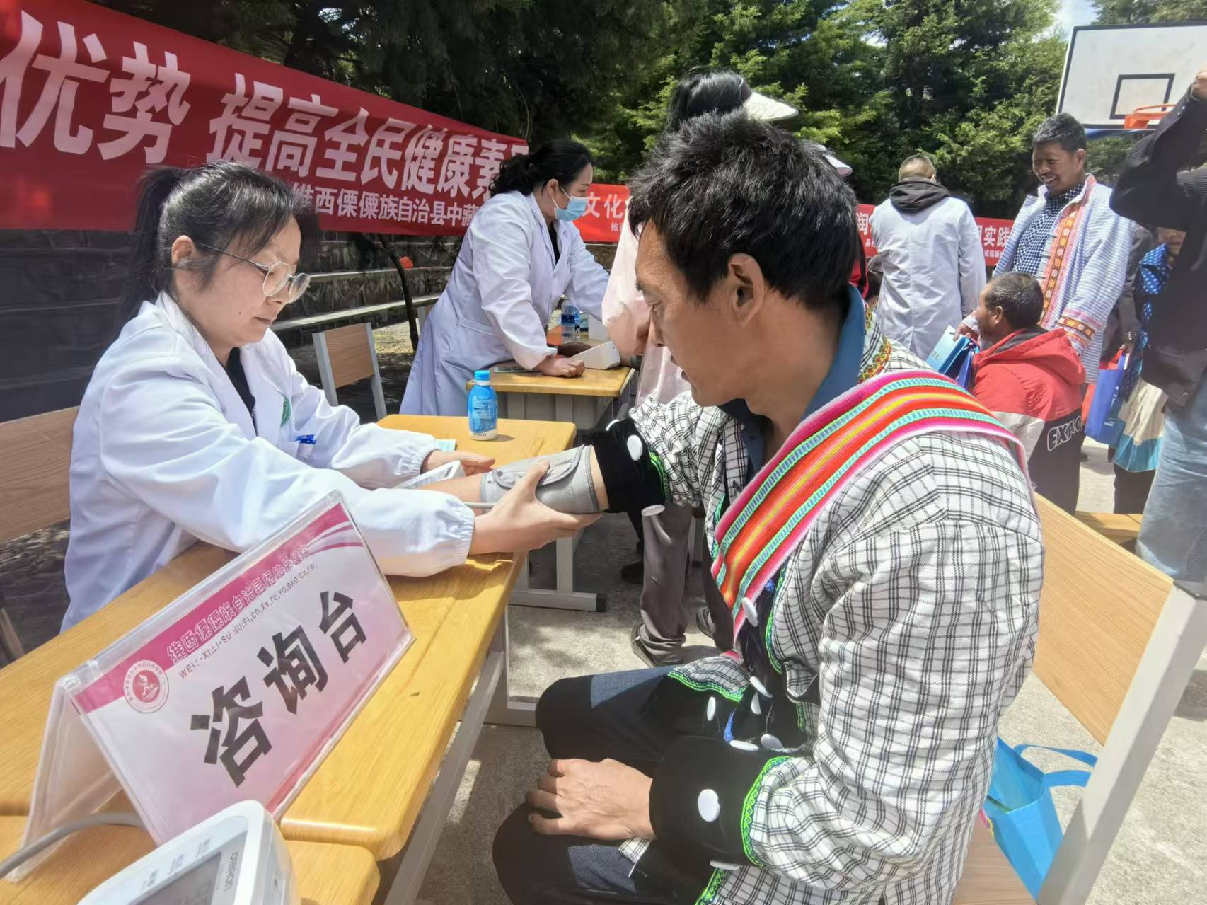 今年以來,由上海幫扶專家、縣人民醫(yī)院醫(yī)師組成的維西縣新時代文明實踐中心先鋒醫(yī)療隊多次深入村組開展巡回醫(yī)療志愿服務(wù)活動,為群眾提供心電圖等常規(guī)體檢以及多發(fā)病、慢性病等病癥現(xiàn)場診療和咨詢服務(wù),還免費向群眾發(fā)放藥品,切實解決了農(nóng)村群眾看病就醫(yī)難題。圖為上海專家志愿者向傈僳族群眾免費發(fā)放藥品。