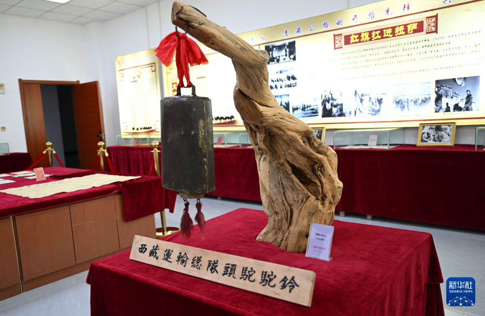 這是11月26日拍攝的陳列在莫河駱駝場(chǎng)青藏駝隊(duì)歷史陳列館的西藏運(yùn)輸總隊(duì)頭駝駝鈴。新華社記者 張龍 攝