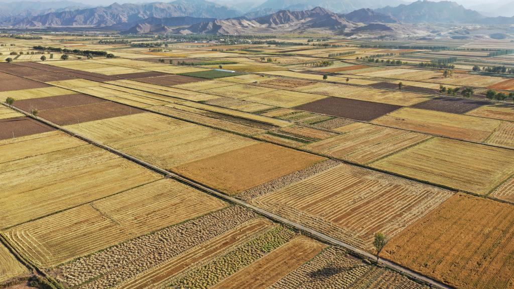 圖為9月29日拍攝的香日德連綿的農田。新華社發(fā)(潘彬彬攝)