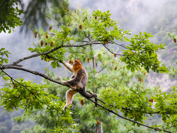 10月11日在四川白河國(guó)家級(jí)自然保護(hù)區(qū)里拍攝的川金絲猴。新華社記者 王曦 攝