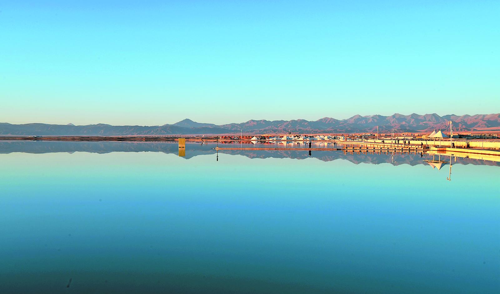 乘坐小火車行駛在軌道上,只見被積雪覆蓋的遠(yuǎn)山倒映在湖水中,湖光山色兩相映,至純至美、宛如仙境。青海茶卡鹽湖文化旅游發(fā)展股份有限公司副總經(jīng)理張修源介紹,“因?yàn)槎祜L(fēng)比較小,所以鹽湖的鏡面效果能夠更加直觀體現(xiàn)‘天空之鏡’,讓游客完全沉浸式感受體驗(yàn)鹽湖的日出、晚霞和星空之美。”