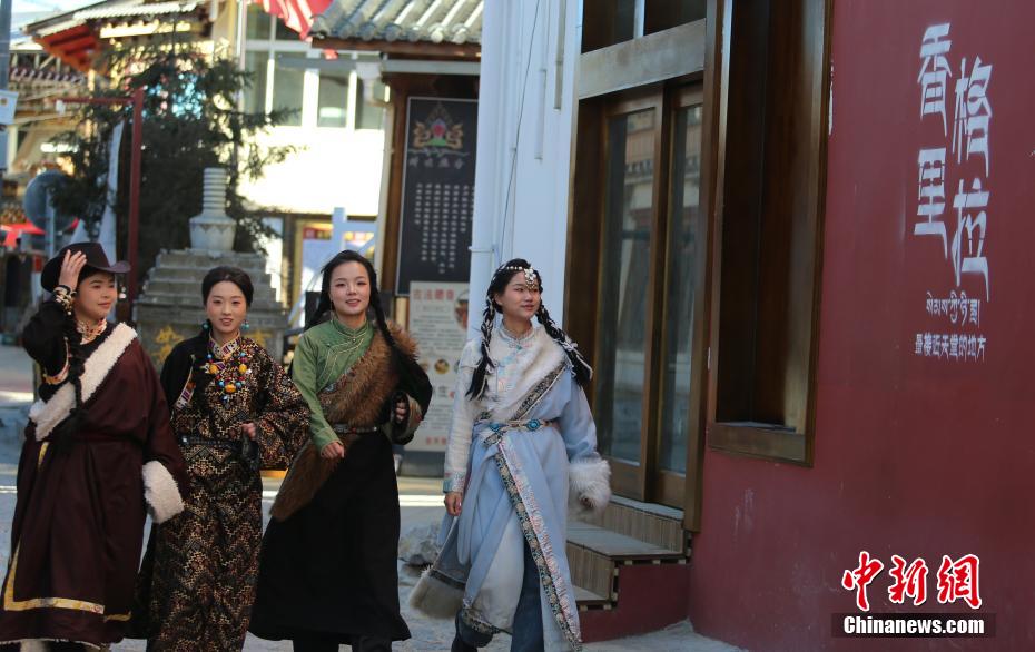 12月23日,游客身著藏裝游覽獨(dú)克宗古城。地處云南西北部的迪慶藏族自治州香格里拉市,是云南熱門旅游地,也是世人向往的世外桃源。近年來,該州圍繞“冬看日照金山嬉雪觀鳥”的主題,不斷豐富業(yè)態(tài)服務(wù)好游客,推動(dòng)冰雪世界“冷資源”變?yōu)椤盁峤?jīng)濟(jì)”。中新社記者 黃興鴻 攝