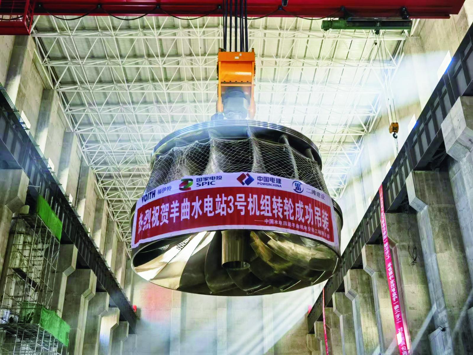 羊曲水電站3號機組轉(zhuǎn)輪成功吊裝。