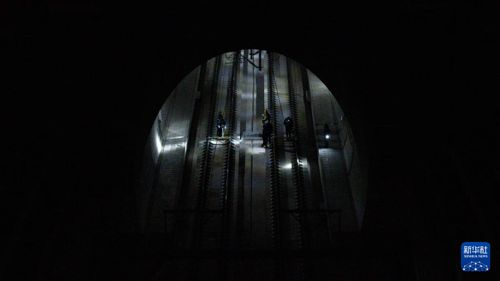 1月14日凌晨,橋隧工在新烏鞘嶺隧道內(nèi)開展全面檢查。新華社記者 郎兵兵 攝