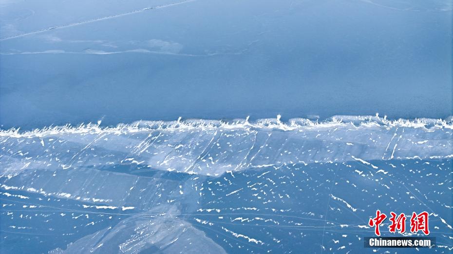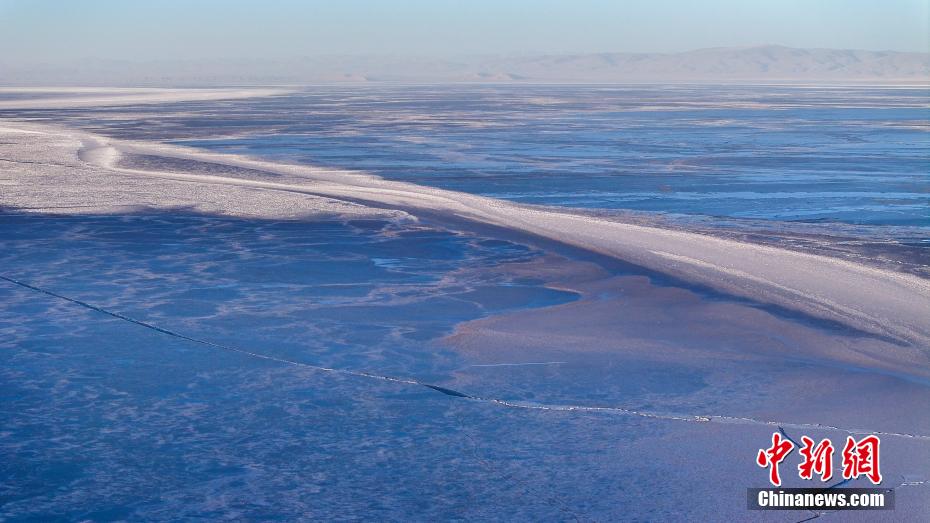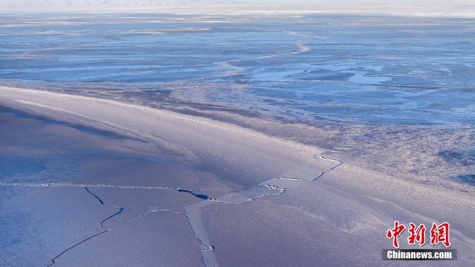 1月26日,被譽為“高原藍寶石”的青海湖湖面上覆蓋了一層晶瑩剔透的湖冰,在陽光的照射下銀光閃爍,宛如仙境。根據(jù)衛(wèi)星遙感監(jiān)測結(jié)果,1月19日,青海湖完全凍結(jié)。圖為進入封凍期的青海湖。(航拍圖片)