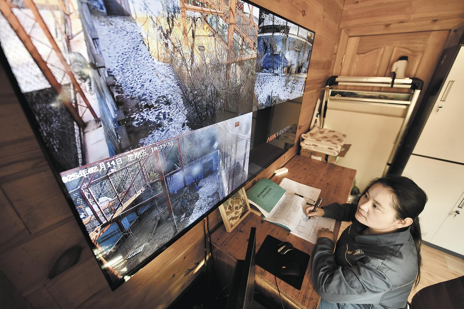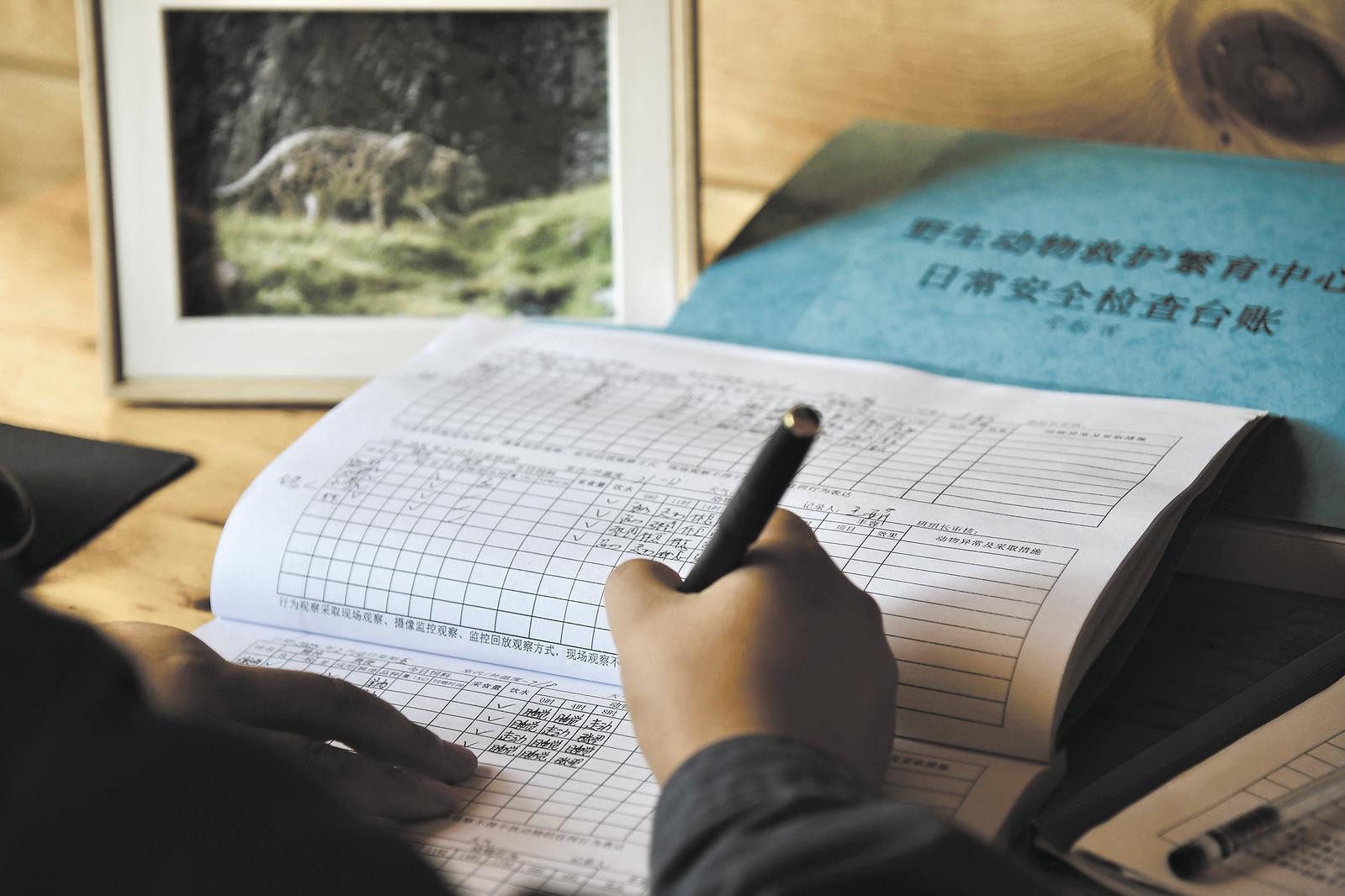 監(jiān)控室內(nèi),觀察完雪豹活動后的王亞萍正在詳細(xì)地記錄著傲雪上午的活動細(xì)節(jié),這些珍貴的數(shù)據(jù)對于雪豹的保護(hù)與研究至關(guān)重要。“通過記錄,我也很熟悉園內(nèi)每一只雪豹的性格與喜好,從雪豹的一舉一動中,掌握與它們交流的方式?!蓖鮼喥家贿呌涗浺贿咈湴恋卣f。