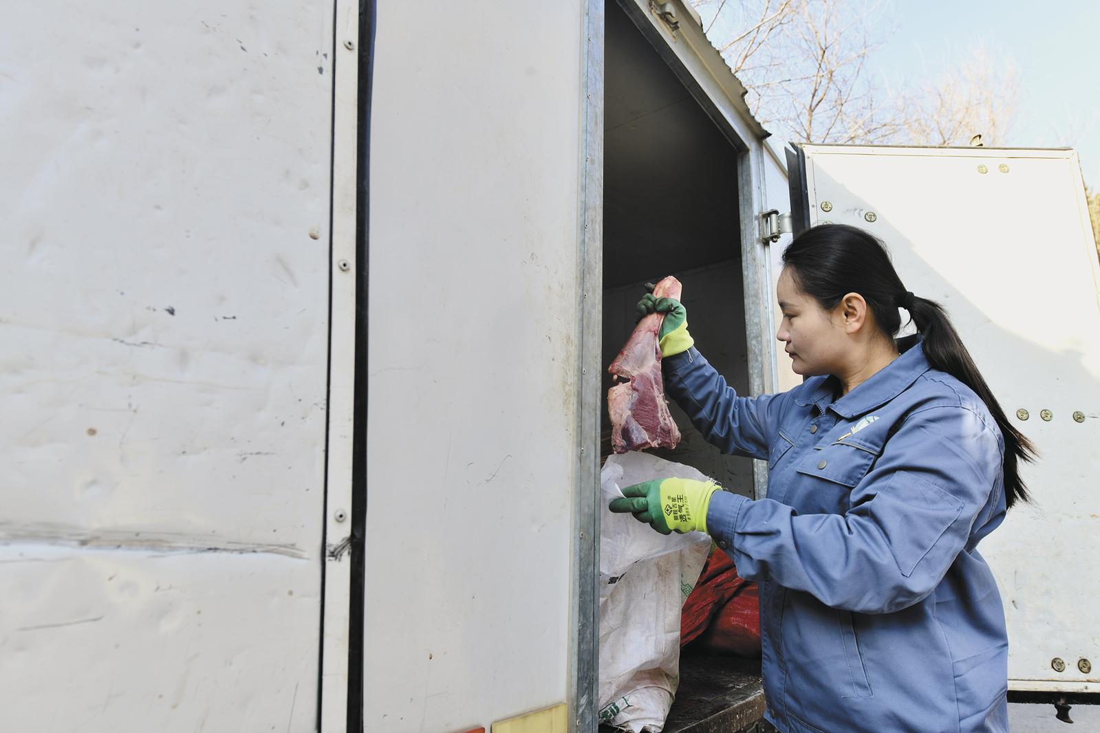 夕陽西下,到了雪豹的開飯時間,王亞萍提著新鮮的羊腿,步履輕盈地走向內(nèi)舍,要為她的伙伴們送上美味的晚餐。不能進(jìn)入內(nèi)室的我們仿佛看到了雪豹開心邁向食物,享受大餐的畫面。