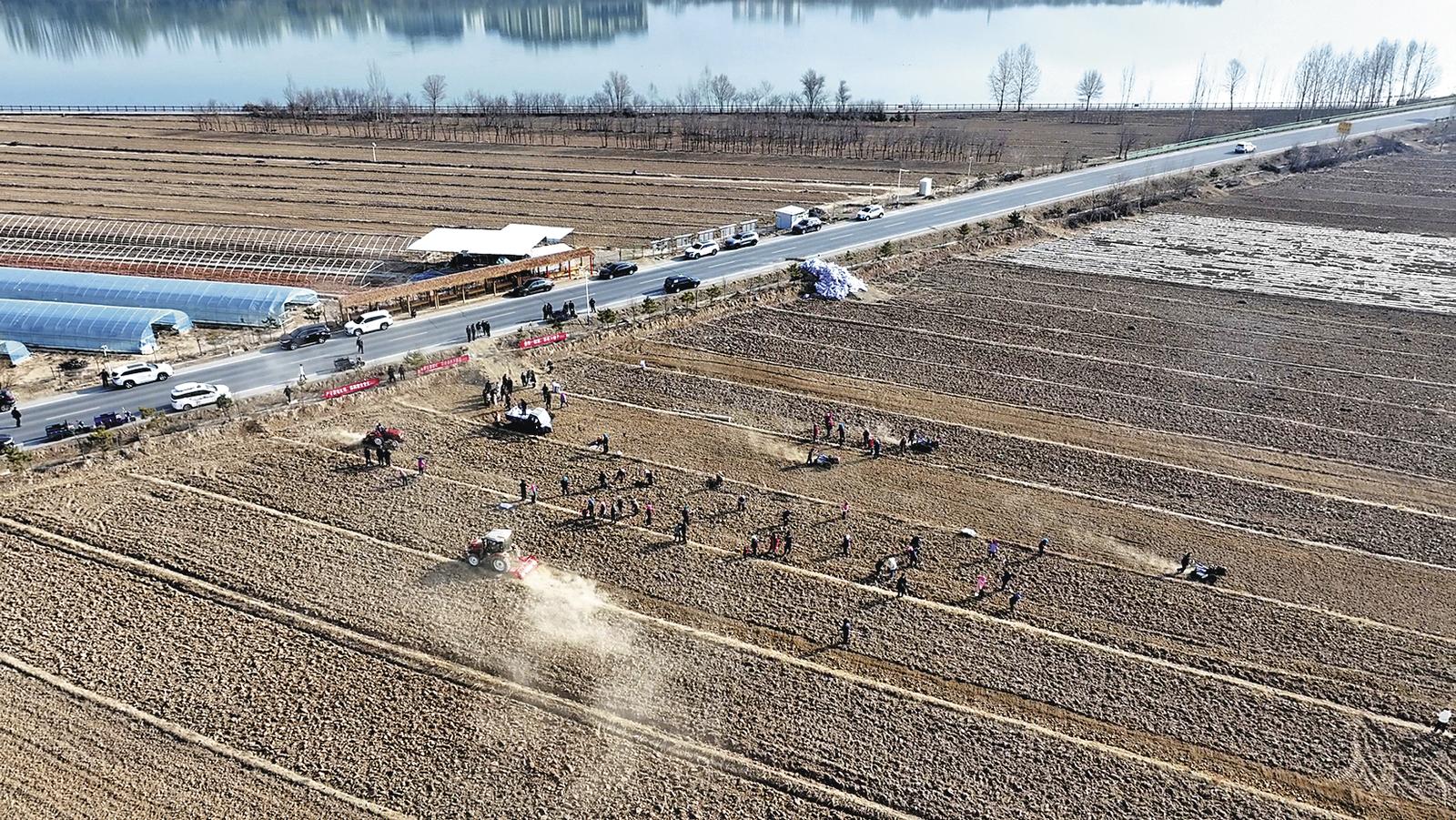 撒下有機肥、備好種子、安裝播種機,經(jīng)過緊張的準(zhǔn)備,隨著播種機巨大的輪子緩緩轉(zhuǎn)動,春耕第一犁正式開啟,肥沃的田地被犁得嘩嘩翻動,像湖面掀開的波浪。