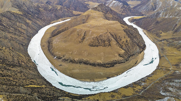 3月27日,位于玉樹藏族自治州治多縣的長(zhǎng)江第一灣,春意漸濃。隨著氣溫回暖,冰封河面逐漸消融。從高空俯瞰,長(zhǎng)江蜿蜒如巨龍,雖仍覆冰雪,但零星裂縫中翠綠的河水閃爍,宛如鑲嵌了綠松石的腰帶纏繞周圍的山體。