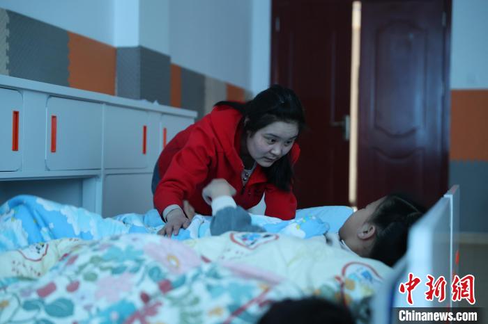 3月31日,青海西寧,特教老師開毛加午休時哄孩子睡覺。青海省西寧市星光特殊兒童服務(wù)中心現(xiàn)有四十多名特教老師,他們用愛點(diǎn)亮“星星的孩子”內(nèi)心世界,幫助這些孩子更好地融入學(xué)校生活、走向社會。張忠蘋 攝