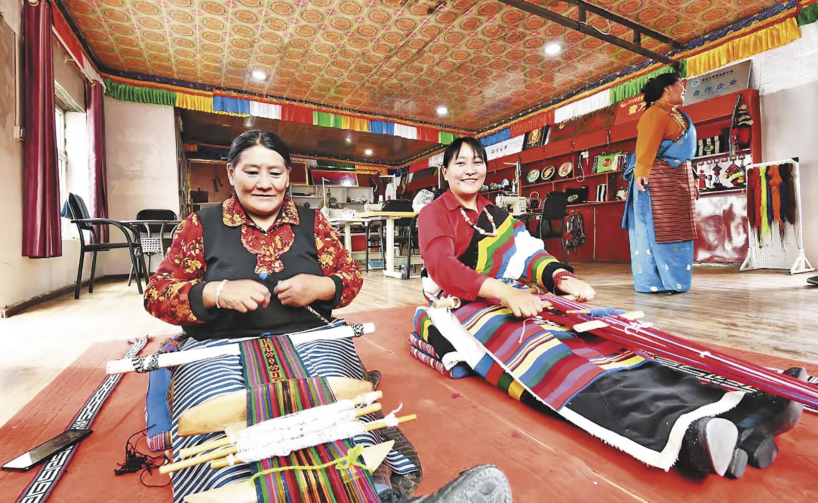 產(chǎn)業(yè)協(xié)作的熱潮之下,文化的根脈正在這片土地深扎。走進(jìn)崗巴布民族手工藝品合作社,氆氌的經(jīng)緯間流淌著吐蕃時期的紋樣,掐絲唐卡的金線里纏繞著藏傳佛教的智慧,而講解這些工藝品的,是能用流利漢語交流的藏族社員三木吉。