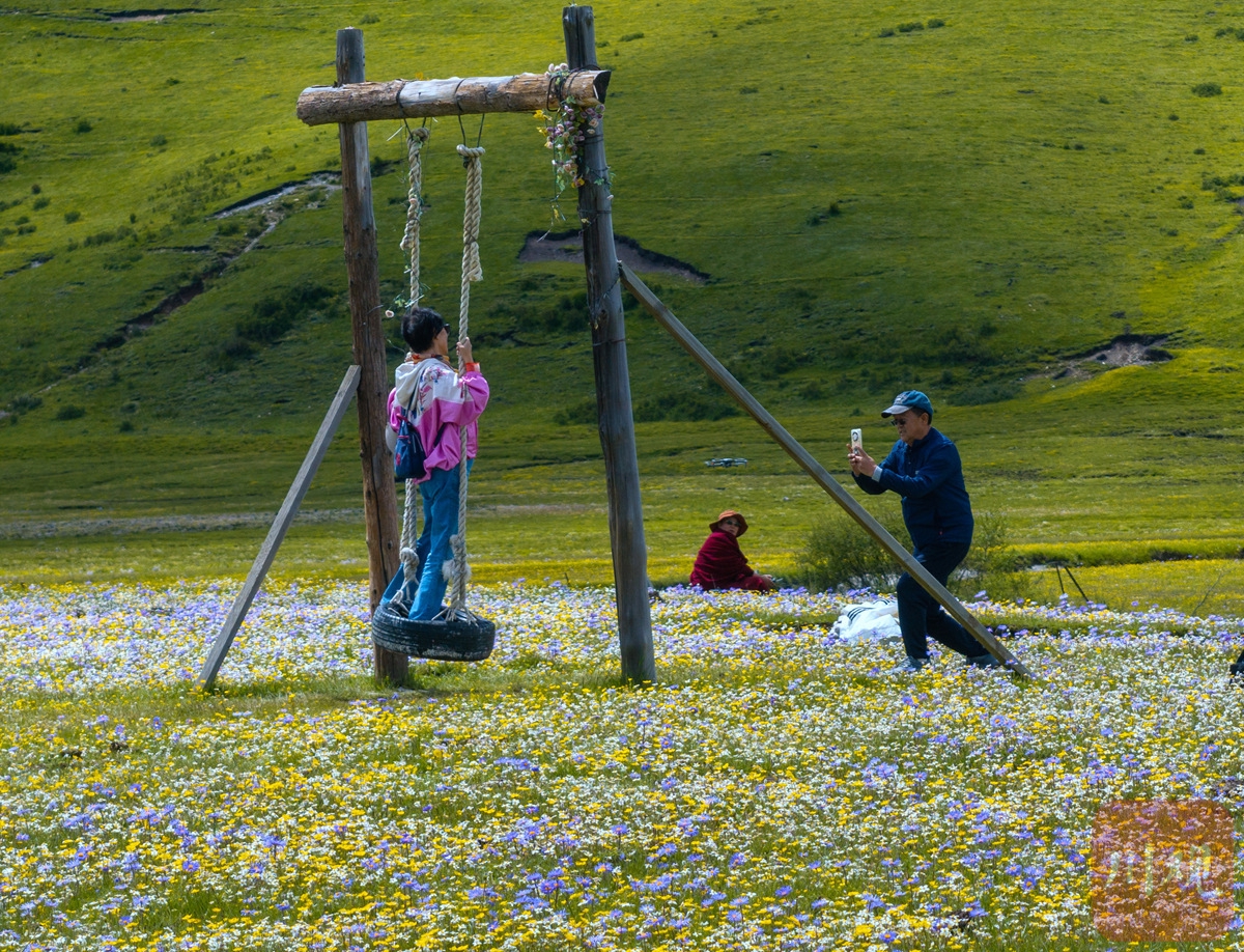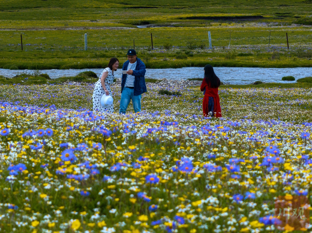 6月25日,游人徜徉俄么塘草原花海間。陳先林 攝