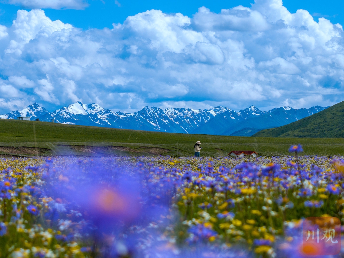 每年6月初至7月中旬,四川省阿壩藏族羌族自治州紅原縣的俄么塘草原都會(huì)變身為一片花的海洋,數(shù)萬(wàn)畝野花在雪峰、藍(lán)天與綠野的映襯下綻放,被當(dāng)?shù)氐牟刈逋Q為“天神的花園”。