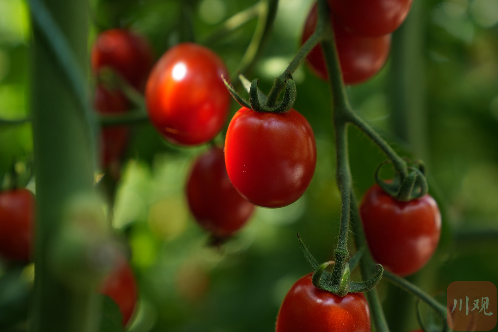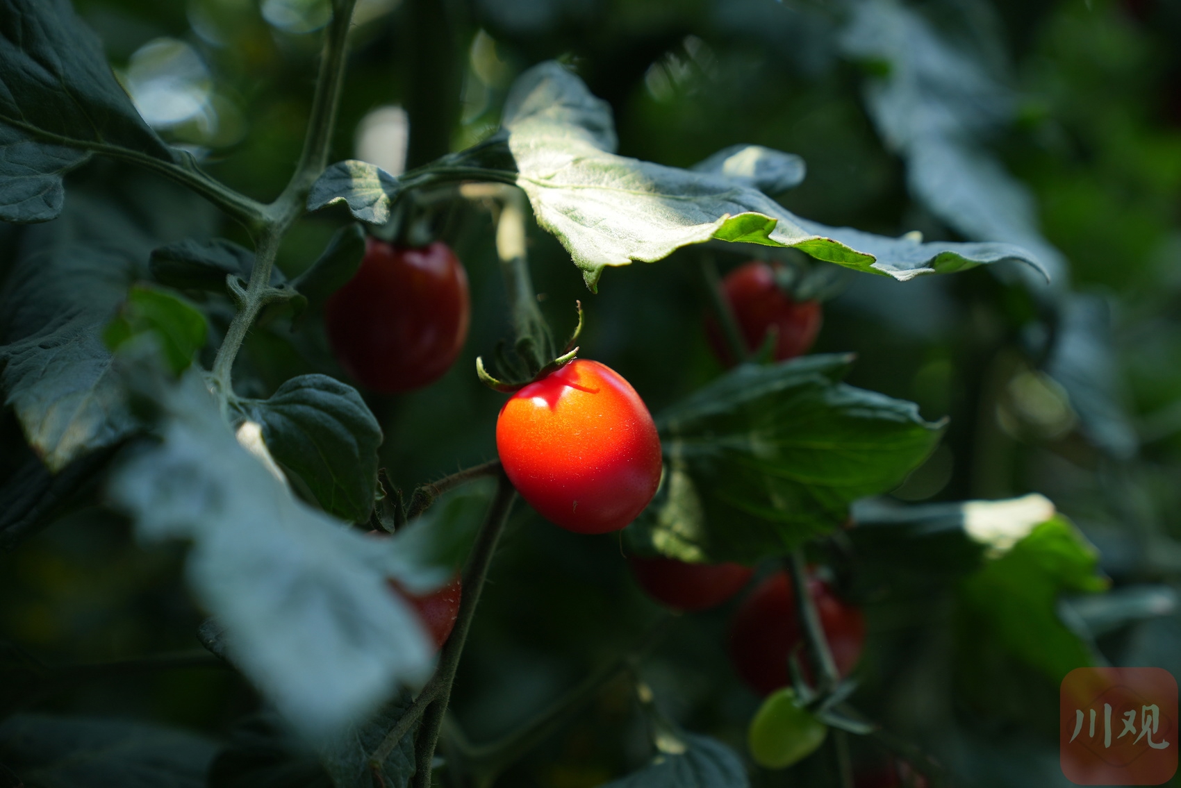 成熟的小番茄像紅寶石般綴滿枝頭。