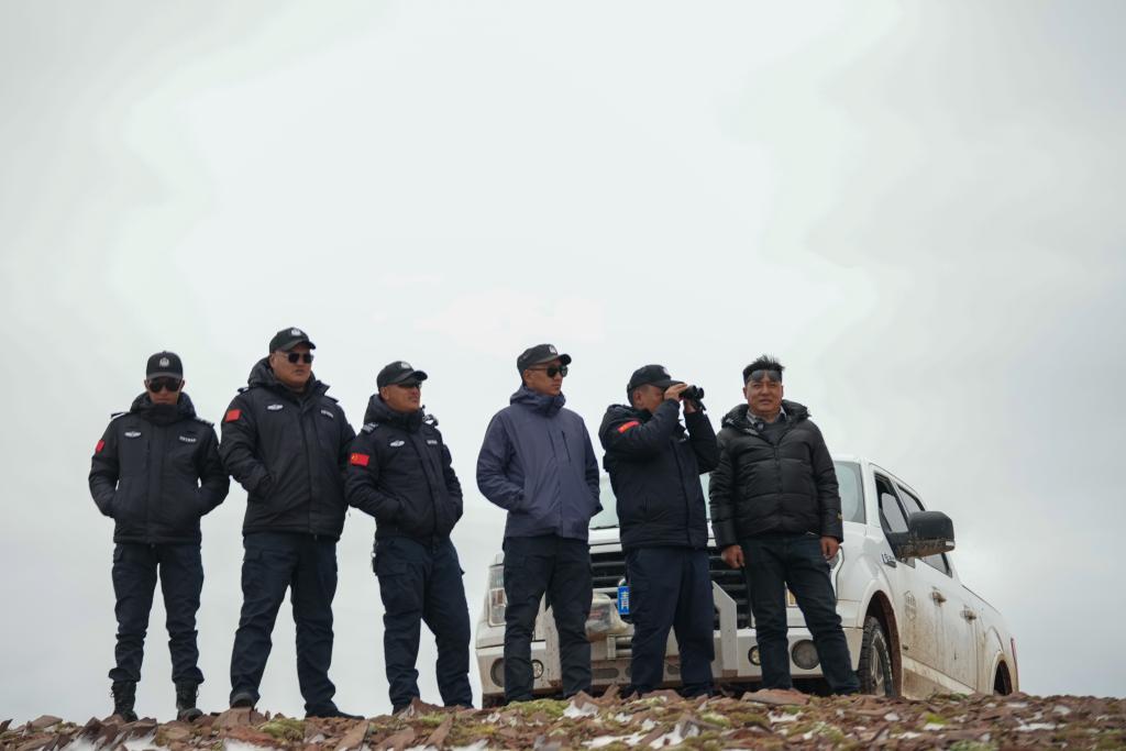 巡山隊員在可可西里卓乃湖附近巡護。新華社記者 杜笑微 攝
