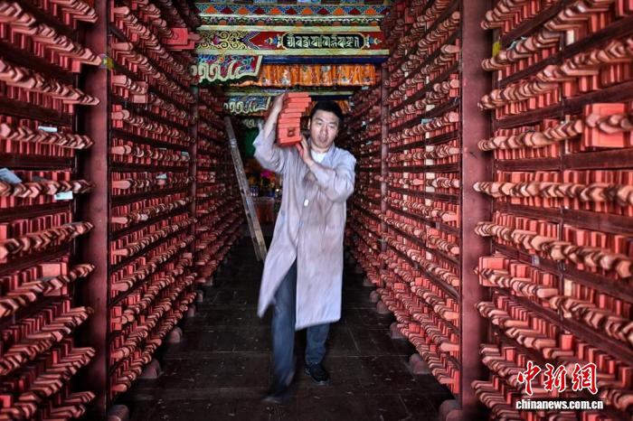 為守護(hù)這些珍貴印版,印經(jīng)院的日常維護(hù)工作從不松懈。每年工作人員都會(huì)對(duì)20余萬塊院藏古舊印版進(jìn)行洗版、晾曬、供油等維護(hù)。遇到字體模糊、磨損的印版,70歲的國家級(jí)非物質(zhì)文化遺產(chǎn)代表性項(xiàng)目傳承人彭措澤仁便會(huì)帶領(lǐng)工匠們仔細(xì)校對(duì),發(fā)現(xiàn)磨損、錯(cuò)誤后,便用刻刀小心剜下磨損、錯(cuò)誤部分,重新刻上正確字符鑲嵌上去。在他們的努力下,印經(jīng)院的印版雖歷經(jīng)歲月,卻依然能正常使用,持續(xù)發(fā)揮著文化傳承的作用。