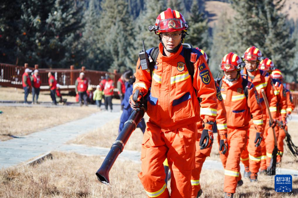 11月8日,在青海省海北藏族自治州祁連縣阿咪東索林區(qū),祁連縣消防救援大隊消防宣傳員為當?shù)刈o林員進行技能培訓。新華社記者 齊芷玥 攝