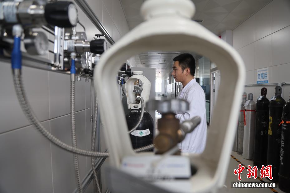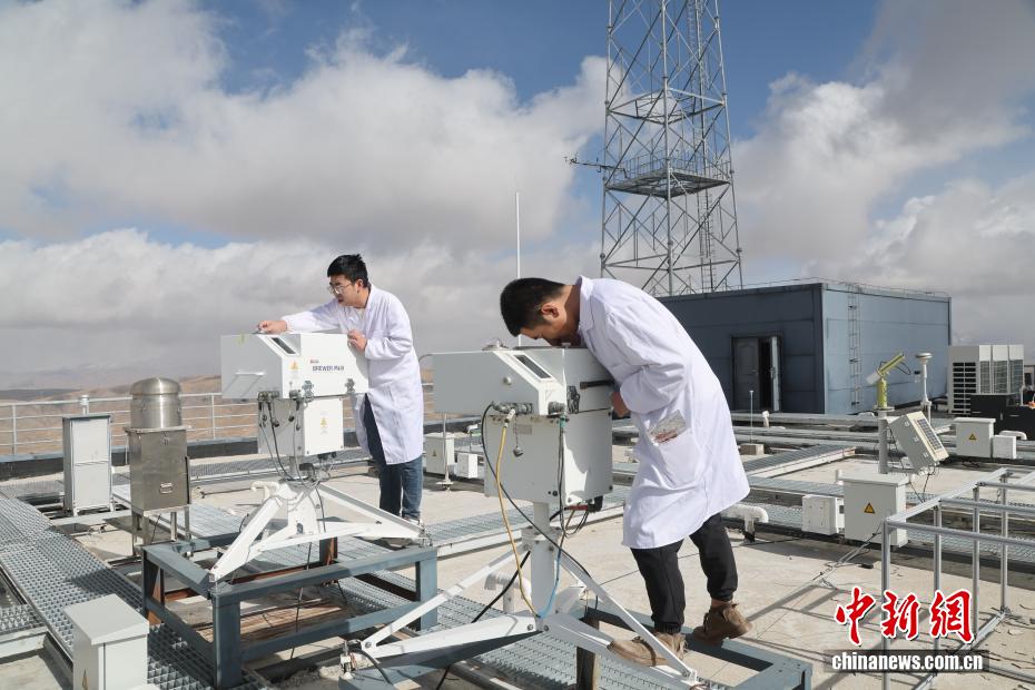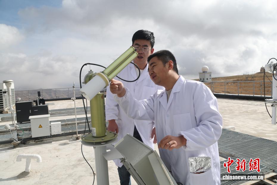 2月5日,位于青海省海南藏族自治州共和縣的瓦里關全球大氣本底站內,工作人員正在檢查測量設備。中新社記者 張忠蘋 攝