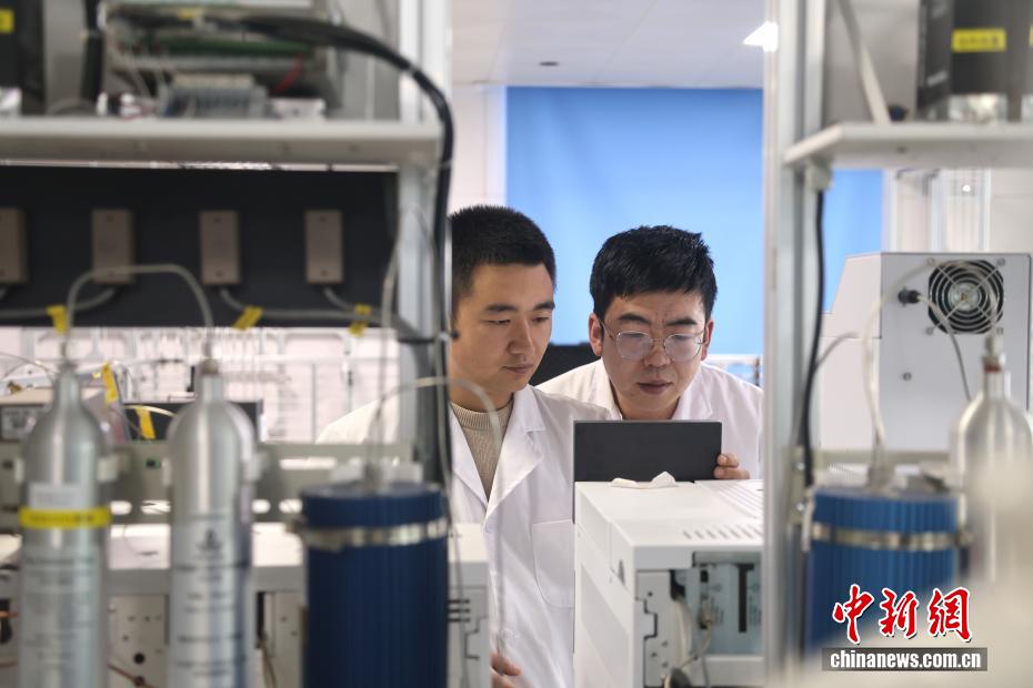 2月5日,位于青海省海南藏族自治州共和縣的瓦里關全球大氣本底站內,值班人員正在檢查測量設備。中新社記者 張忠蘋 攝