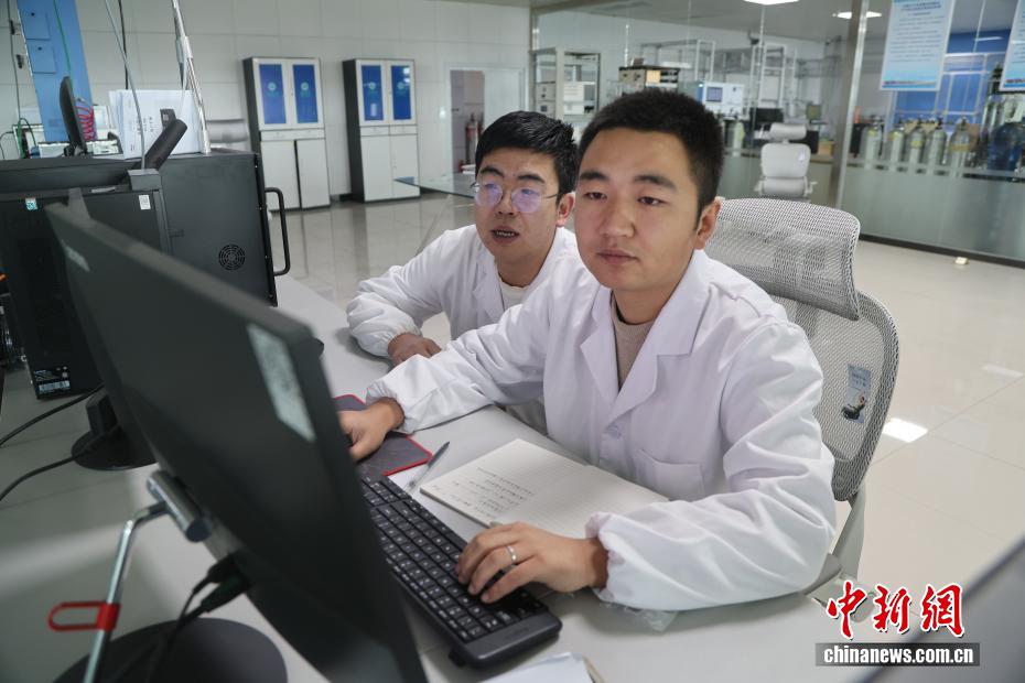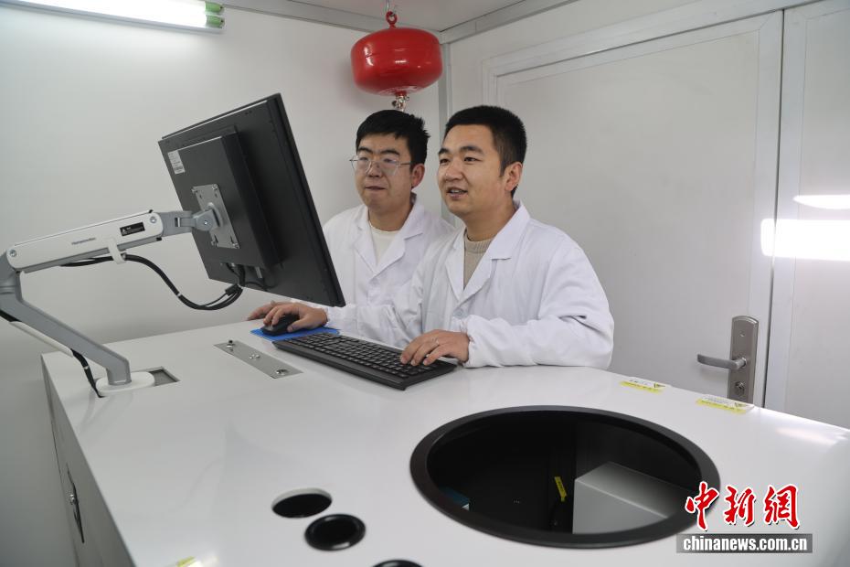 2月5日,位于青海省海南藏族自治州共和縣的瓦里關全球大氣本底站內,值班人員正在檢查大氣臭氧激光雷達收集的數(shù)據(jù)。中新社記者 張忠蘋 攝