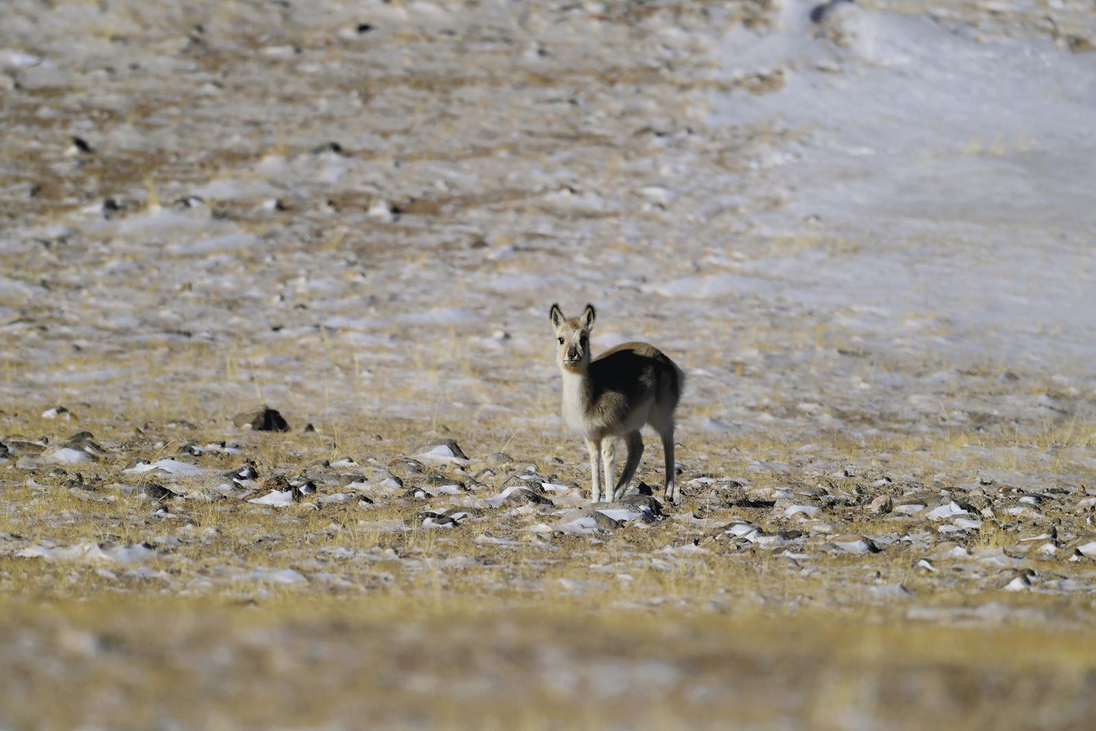 進入可可西里后見到的第一只野生動物是一只可愛的藏原羚。