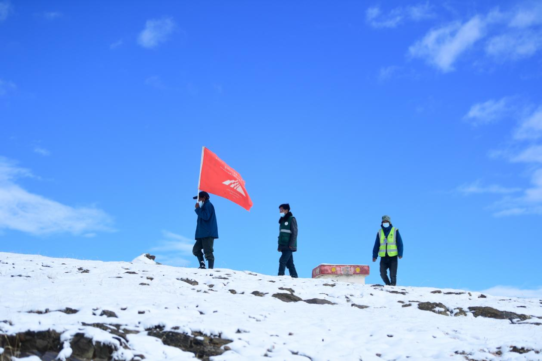 兩湖之間牛頭碑矗立在海拔4610米的山巔