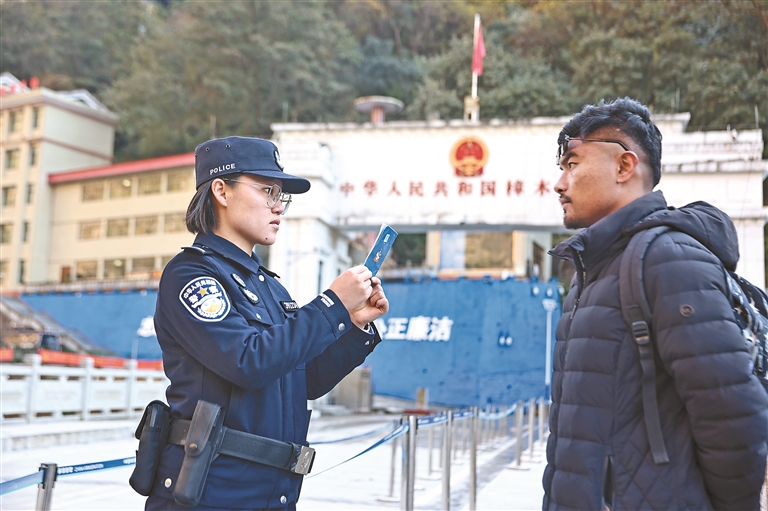 上午10時(shí),車輛通道漸忙。尼泊爾貨車司機(jī)Sandiki緩緩駛近查驗(yàn)點(diǎn),執(zhí)勤民警上前核驗(yàn)證件、檢查車體,流程嫻熟規(guī)范。