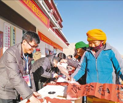 援藏干部為群眾寫(xiě)福字送春聯(lián)