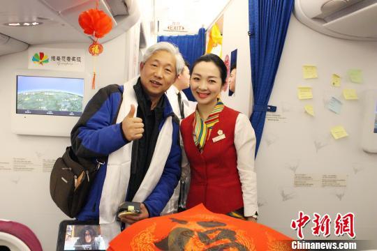 “這是我第二次乘坐西藏航空的春節(jié)主題航班,去年這個時候是在飛機(jī)上包餃子,他們每次春節(jié)的活動都讓我記憶深刻?!背俗鞑睾娇蘸桨嗟目迪壬闷鹪挋C(jī)在機(jī)艙里說。