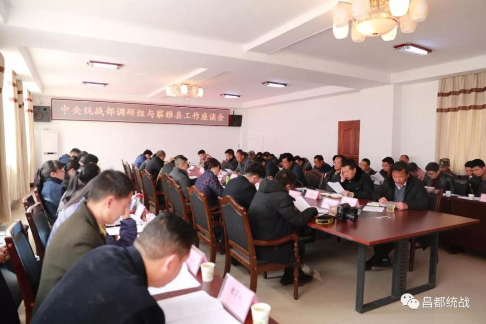 期間,調(diào)研組一行與昌都市委、市政府進(jìn)行座談。尼瑪多吉主持座談會(huì)。佘興宇匯報(bào)了昌都穩(wěn)定、涉宗、扶貧等工作情況。